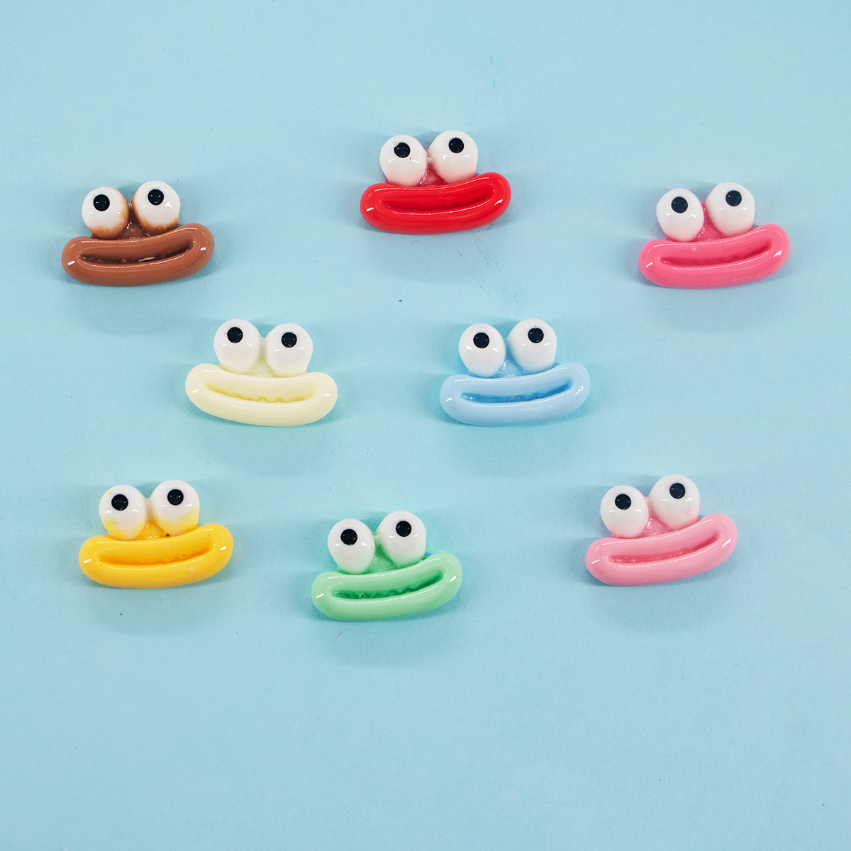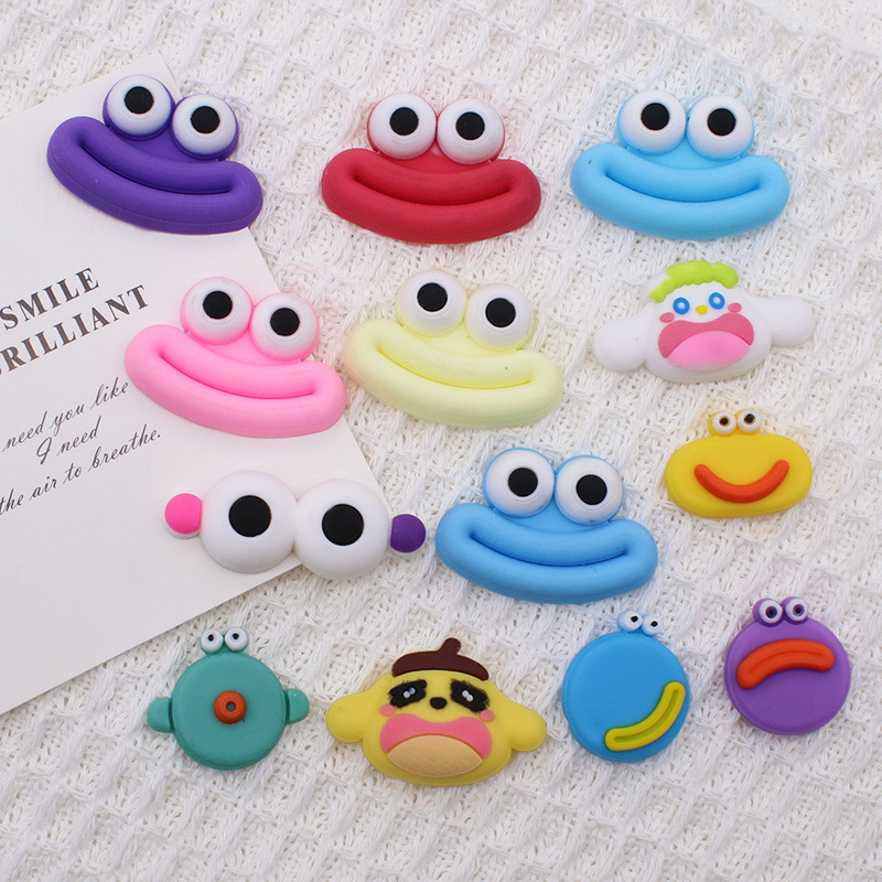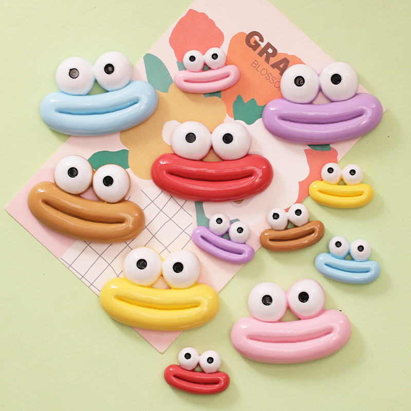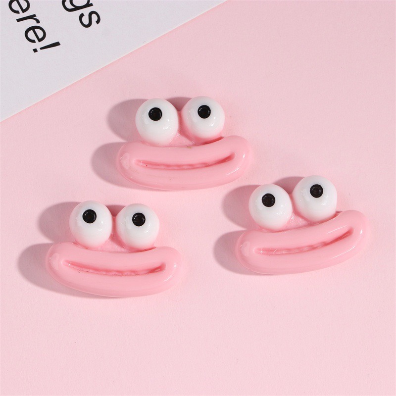新款卡通搞怪中号香肠嘴大眼蛙树脂配件DIY发夹冰箱贴片饰品批发