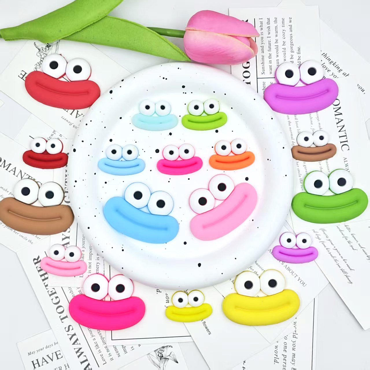 大小号卡通香肠嘴巴眼睛充电器保护套 毛绒玩具发夹手机壳diy配饰