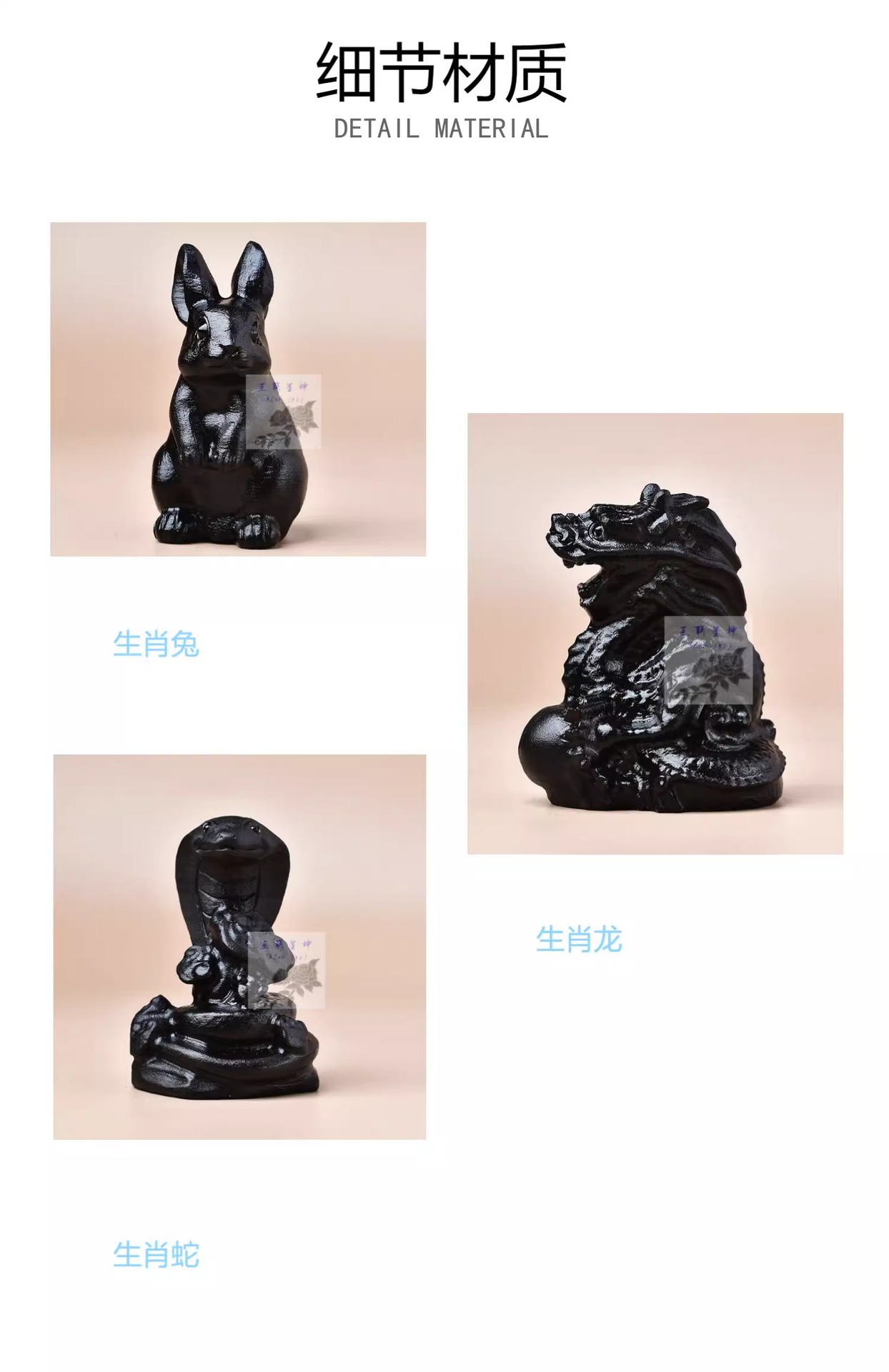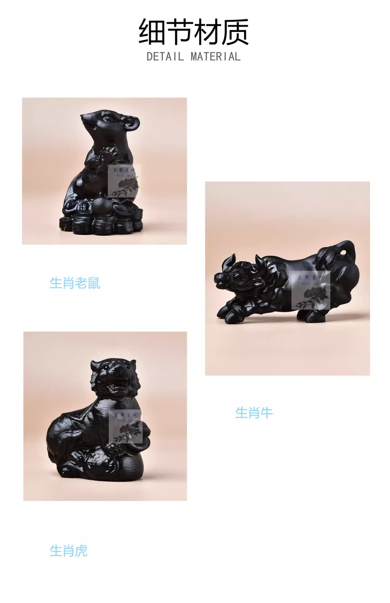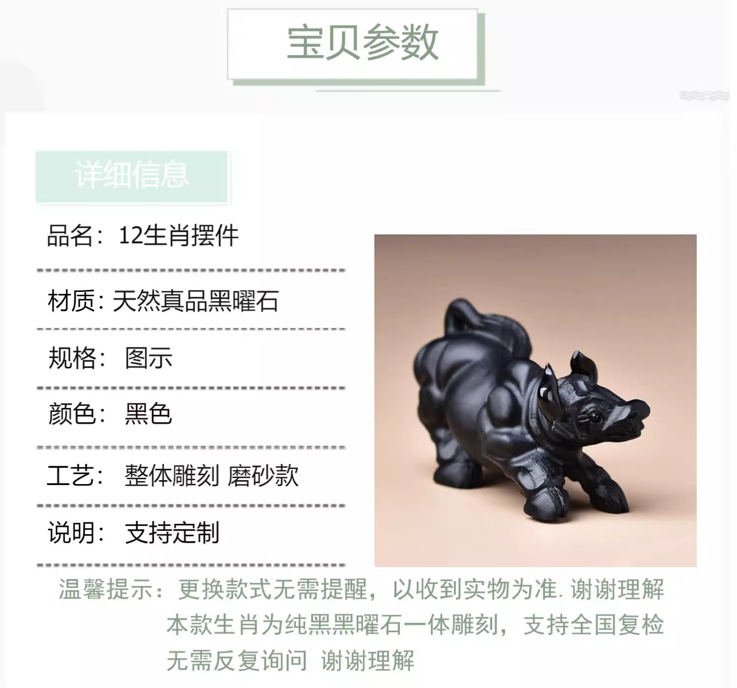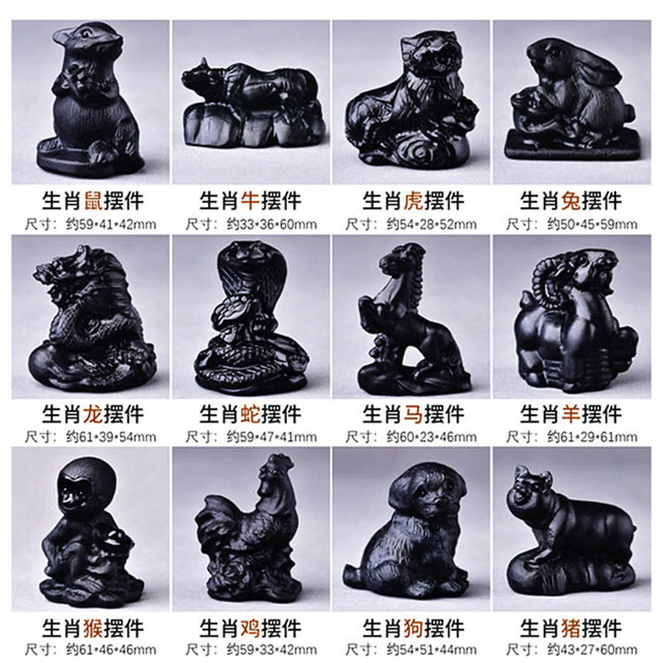 メーカー直販天然黒曜石生肖牛馬豚羊鶏犬猿虎竜蛇鼠置物原石彫刻