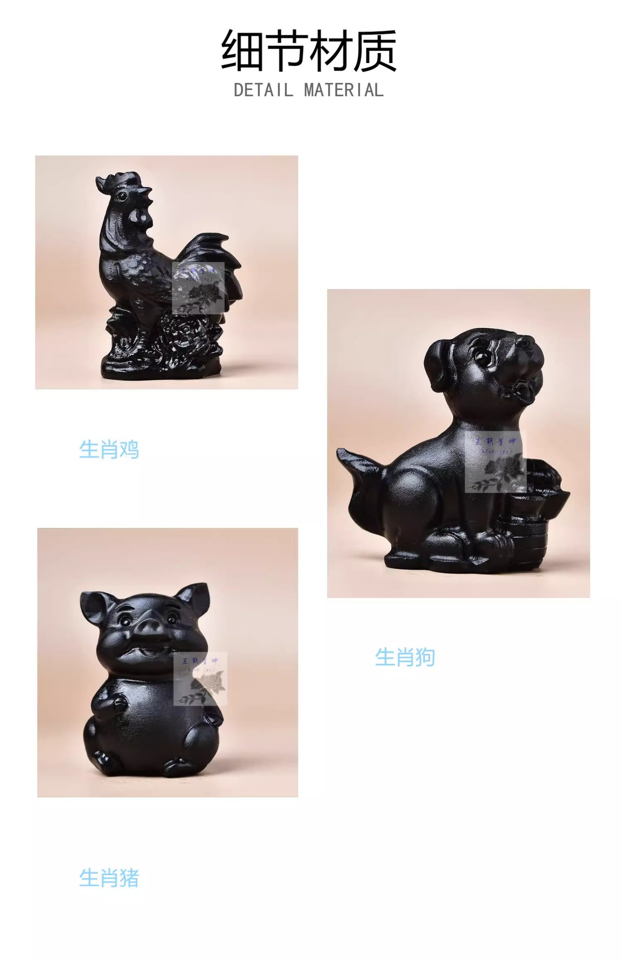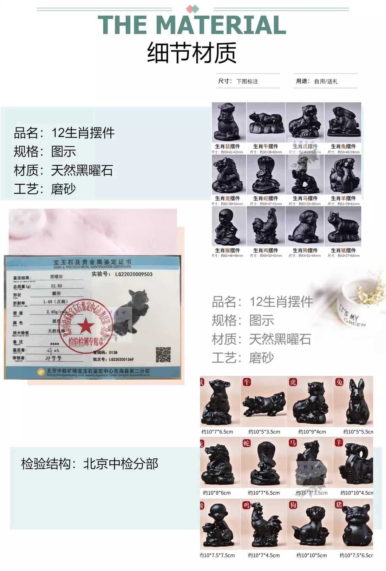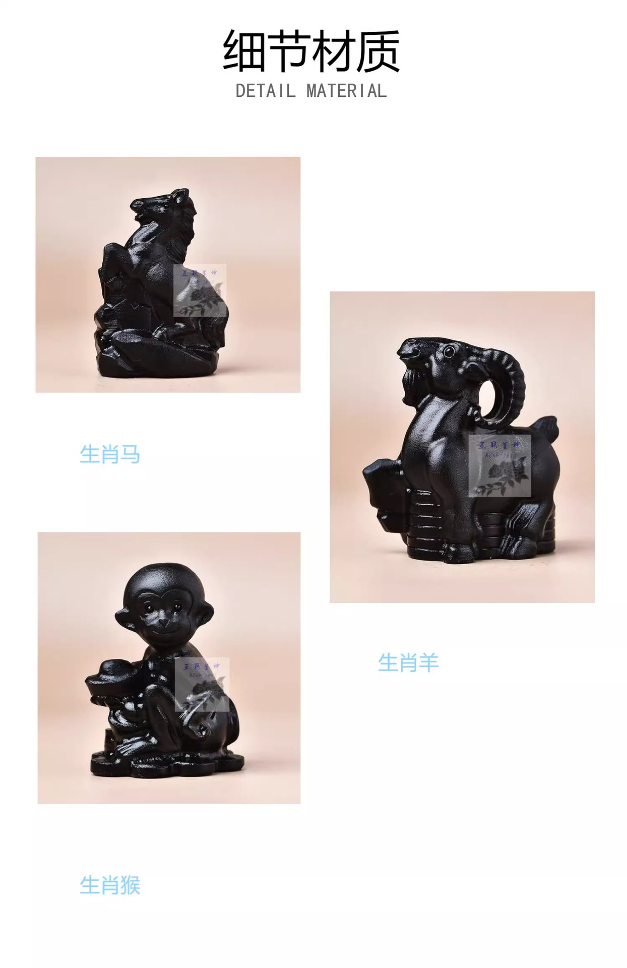 メーカー直販天然黒曜石生肖牛馬豚羊鶏犬猿虎竜蛇鼠置物原石彫刻
