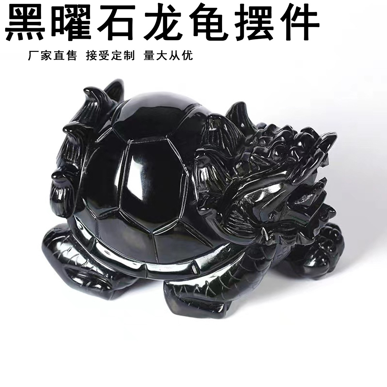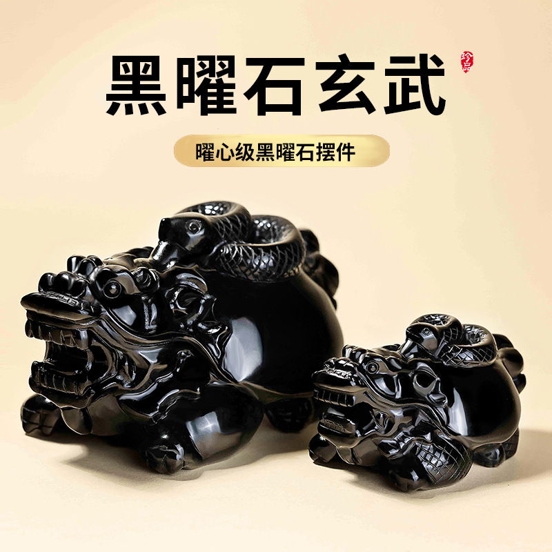 天然黑曜石玄武龙龟摆件玄关家居客厅吉祥物水晶龟蛇五行饰品