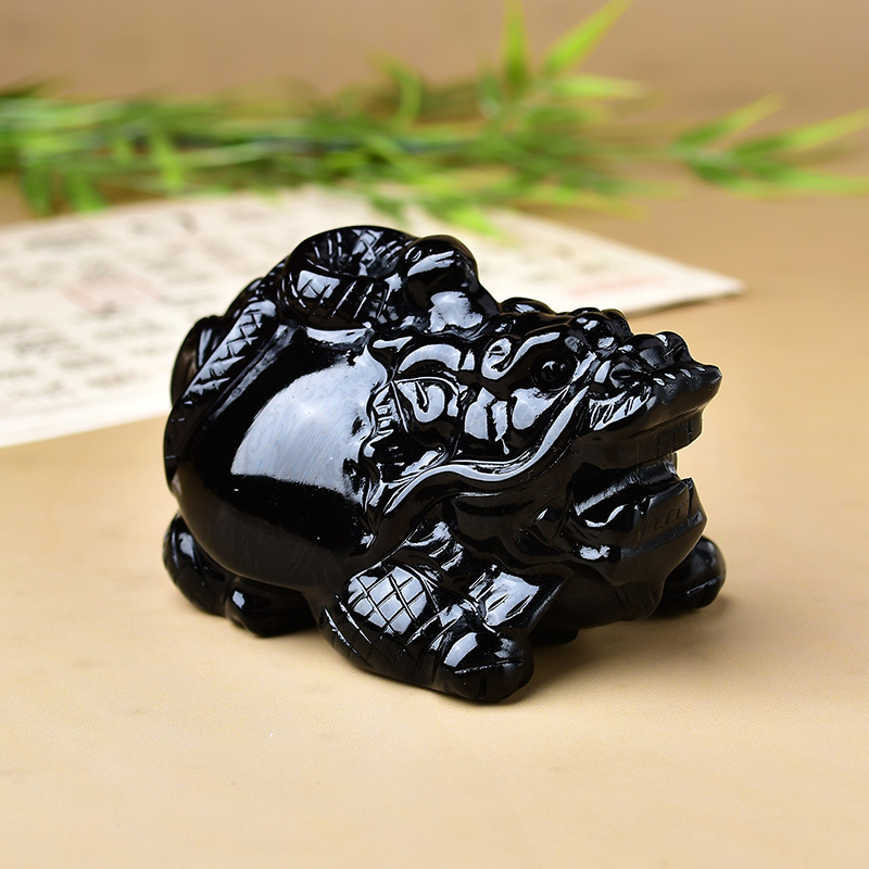 天然黒曜石竜亀置物彫刻件在宅勤務装飾置物卸売り原石磨き工場店