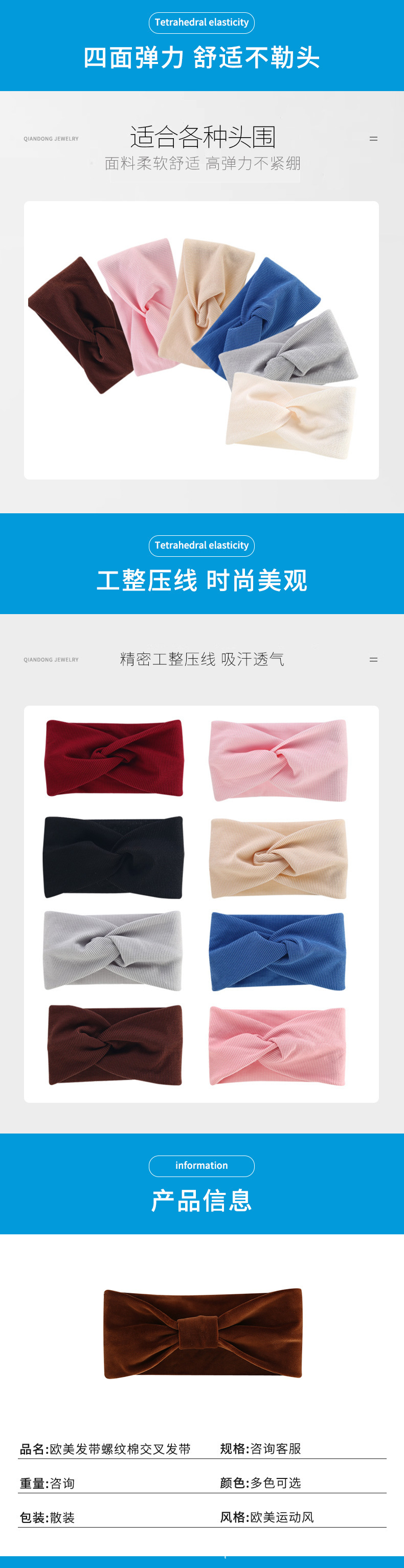 外国貿易用のリブ編みコットンクロスストレッチヘアバンド、スポーツ用幅広ヘッドスカーフ、越境卸売ヘアアクセサリー、ヨガ用吸汗ヘッドバンド