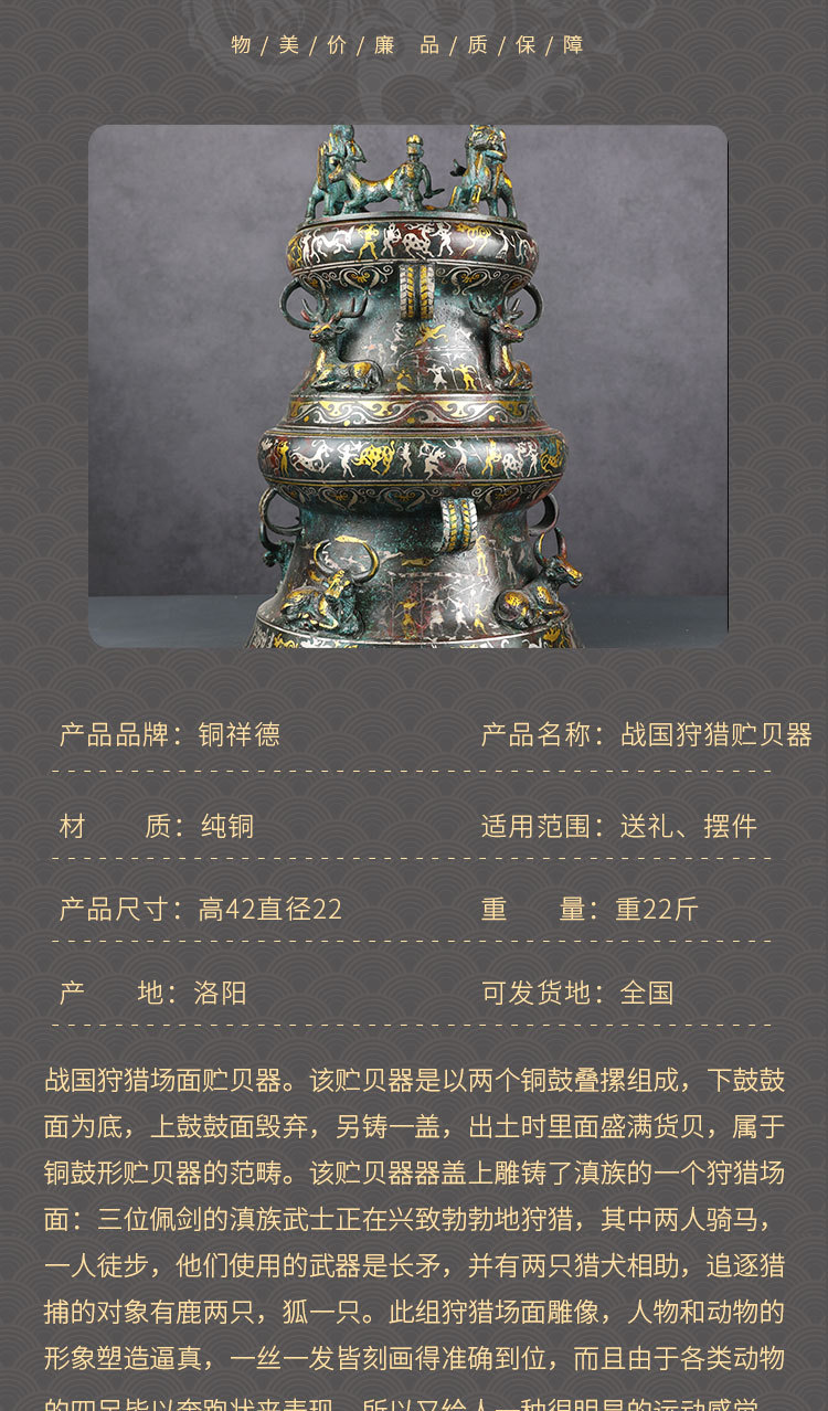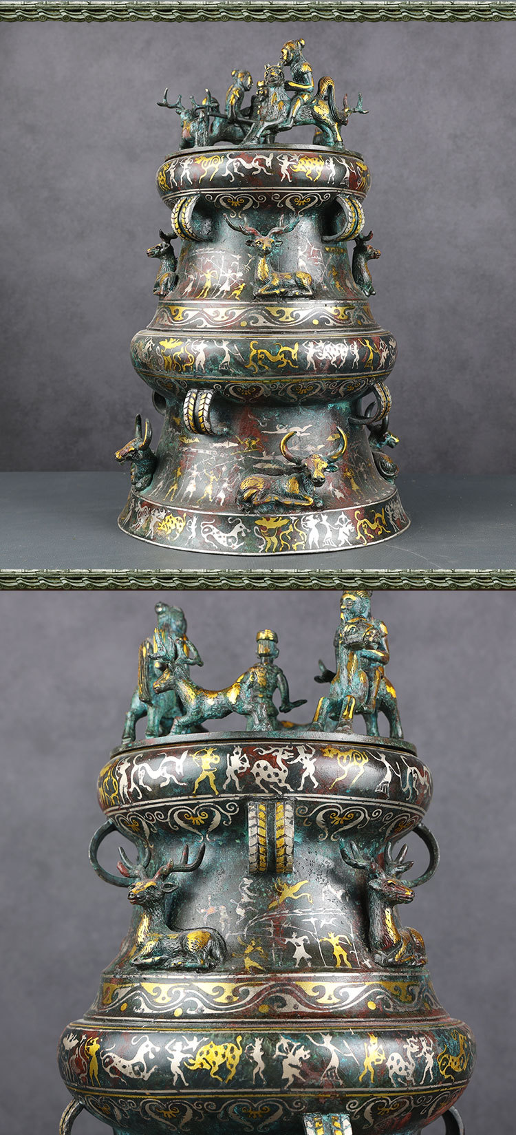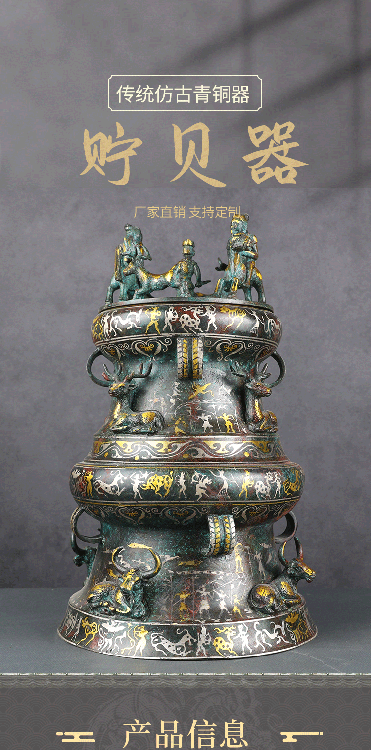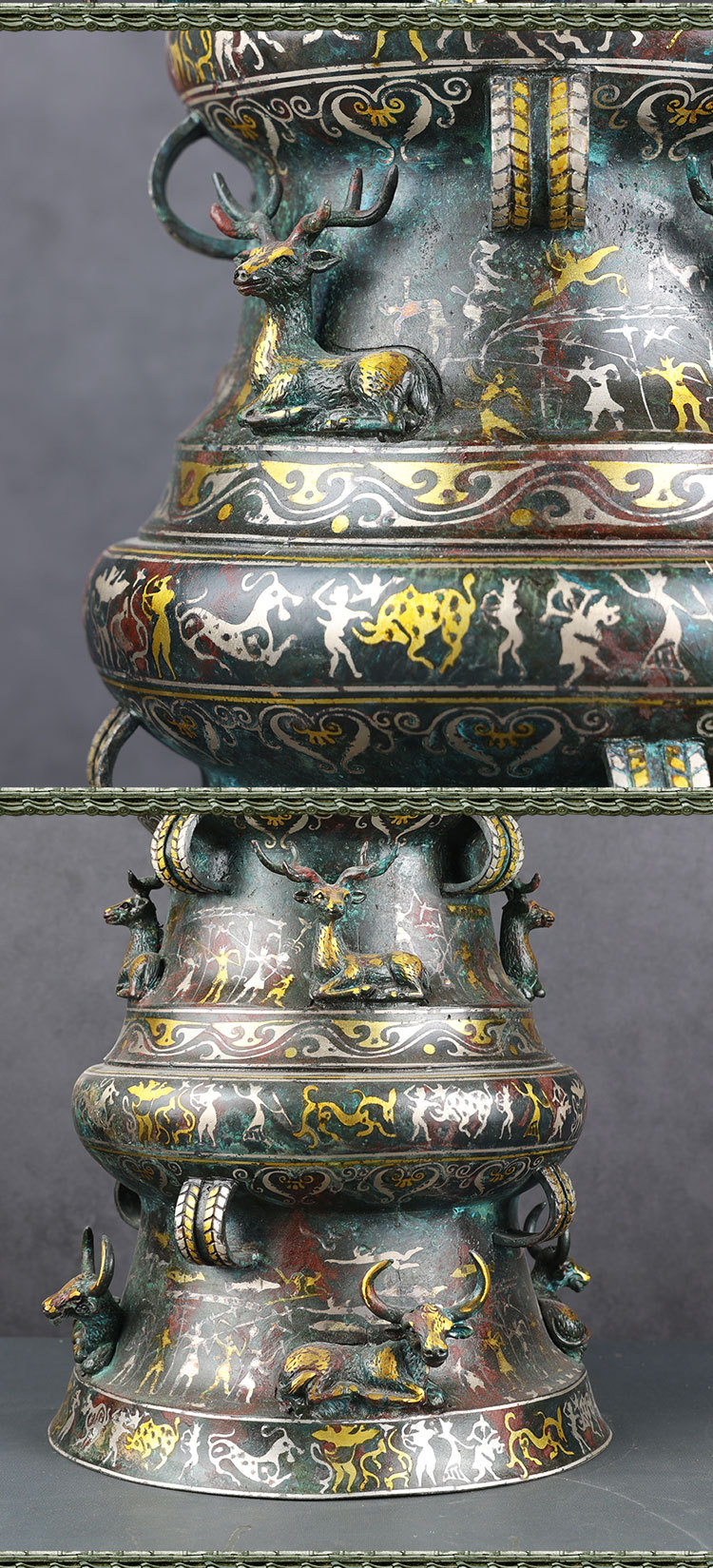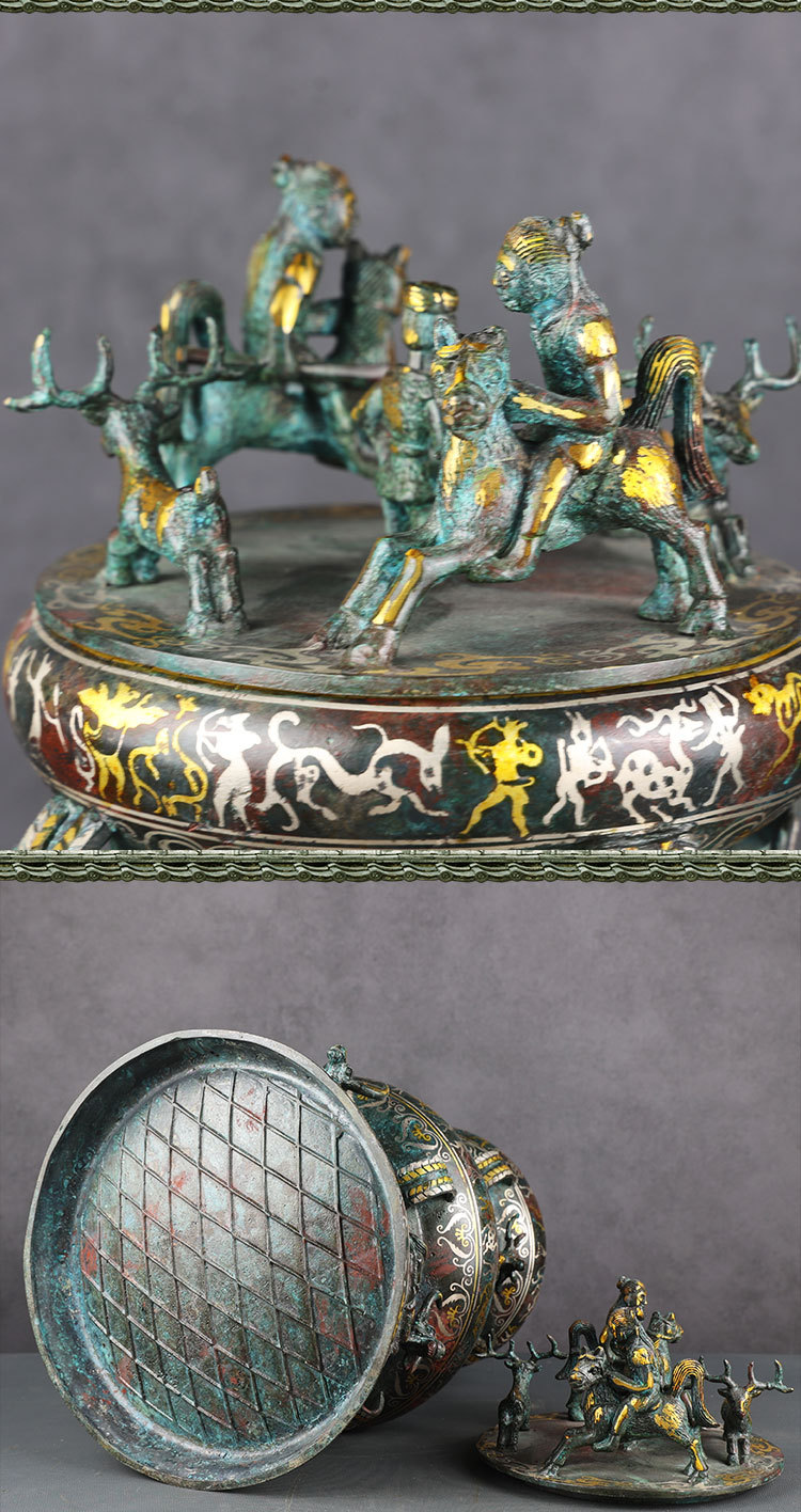 古青銅器戦国狩猟場面貯貝器純銅工芸品置物金と銀の工芸品をプレゼントします。