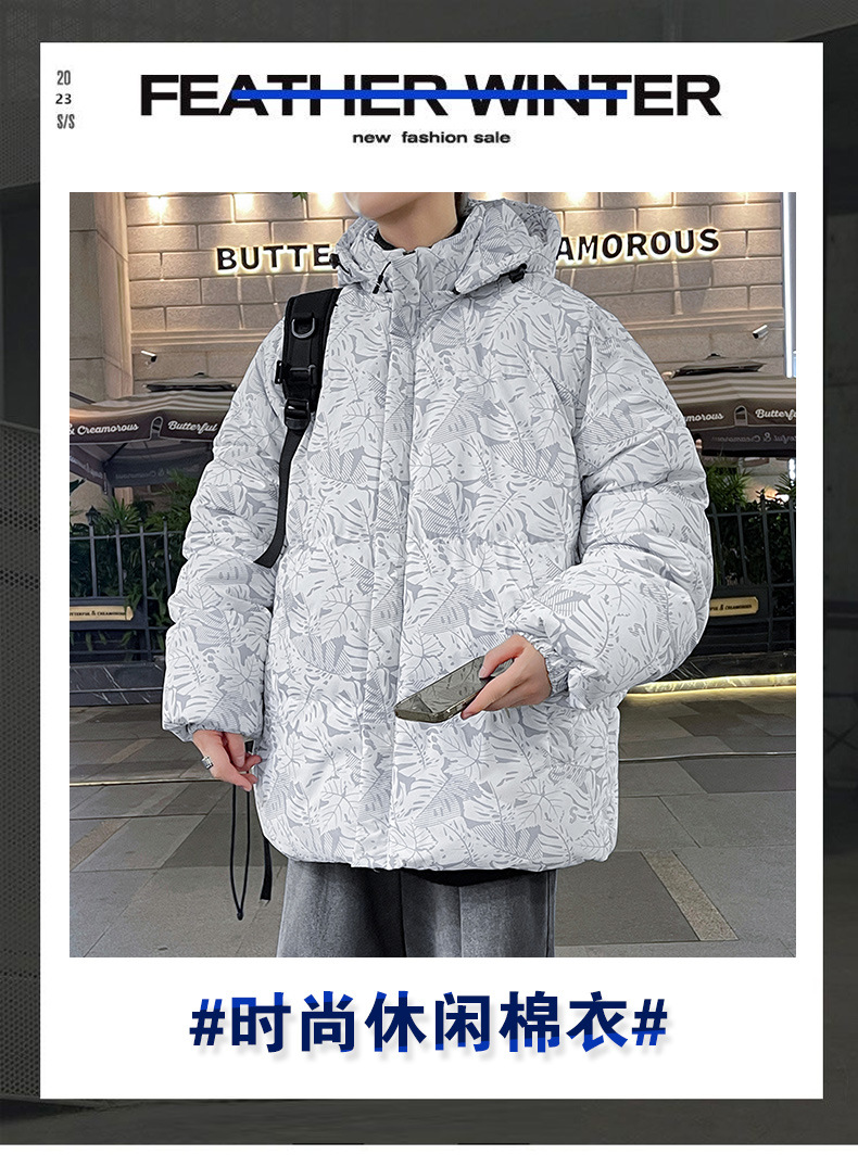 枫叶男士棉服秋冬大码连帽棉衣潮牌外贸棉袄日系保暖休闲百搭