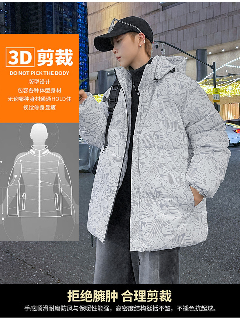 カエデの葉の綿の服の男性の秋冬のコートは厚い保温の韓国版の潮流を厚くして格好いい羽毛の綿の服の男性の綿入れの上着の潮