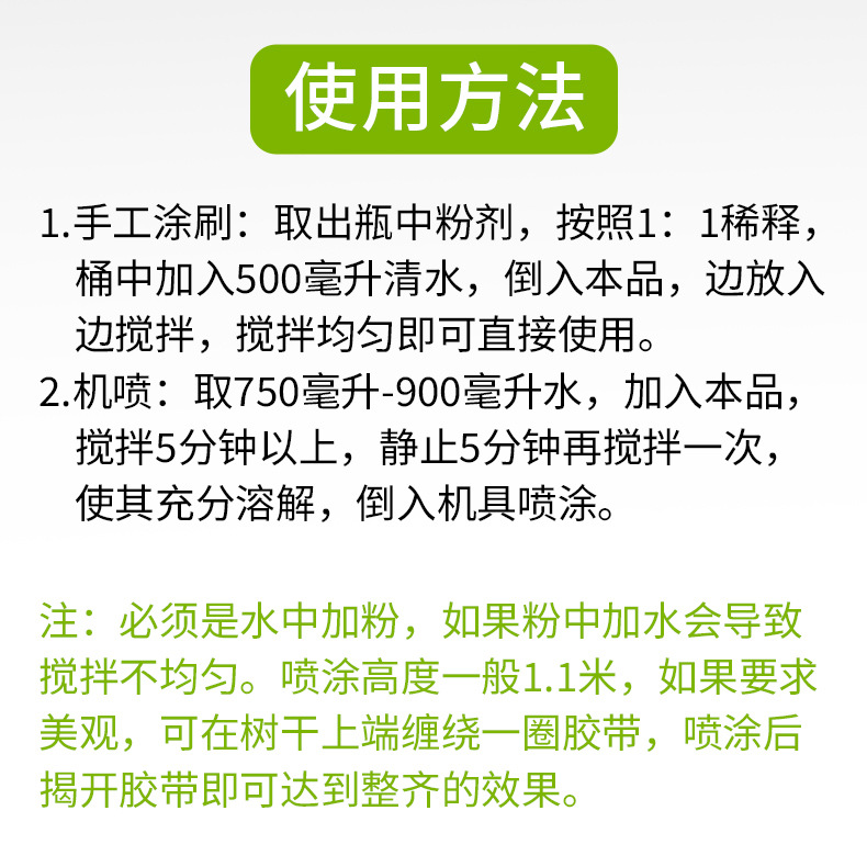 樹木苗木の白塗り剤、幹の白塗り、大木の白粉、害虫対策、日焼け止め、凍結防止、硫黄石鹸水
