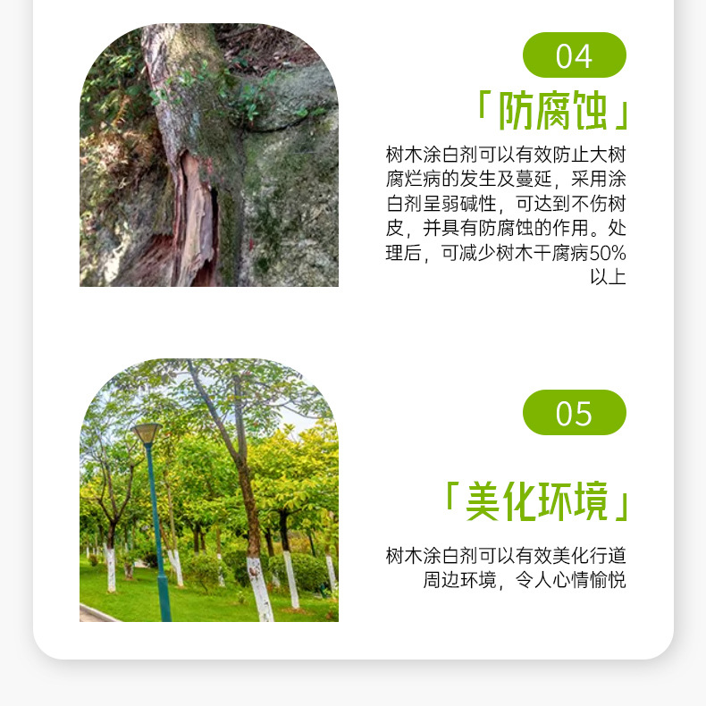 艾尚棵大树涂白剂果树刷白园林防虫杀菌防冻害可喷可涂树木涂白剂