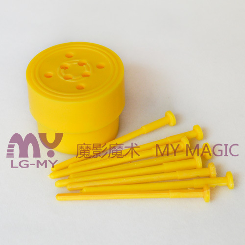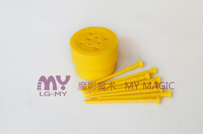 产品介绍:一个刚好能放入硬币的盒子,放进硬币后盖上盖子,在把5个塑料钉穿透盒子,最后当盒子打开时硬币确安然无恙,实在是令人费解,感觉就像大型魔术火箭穿美女一样,本道具非常适合小盆友表演。