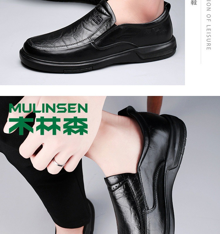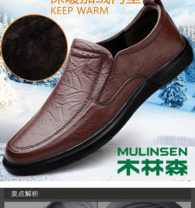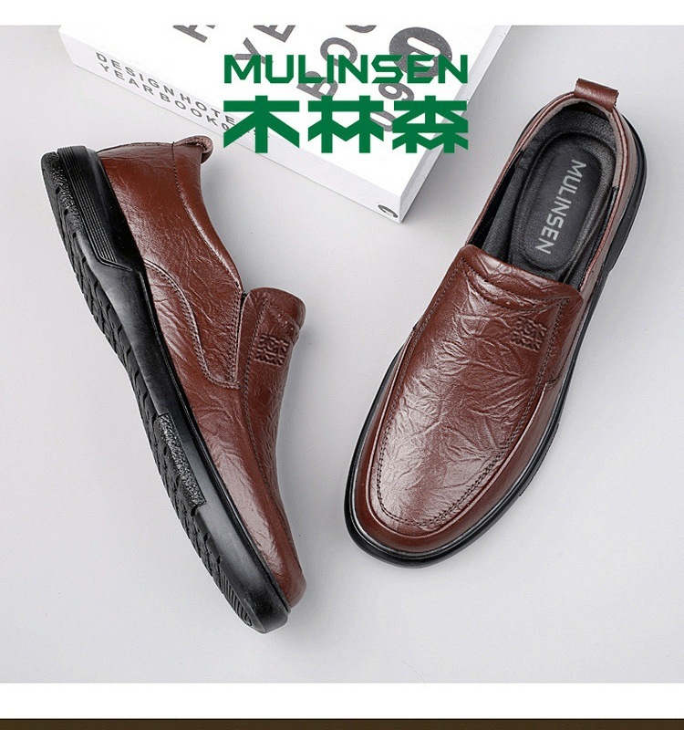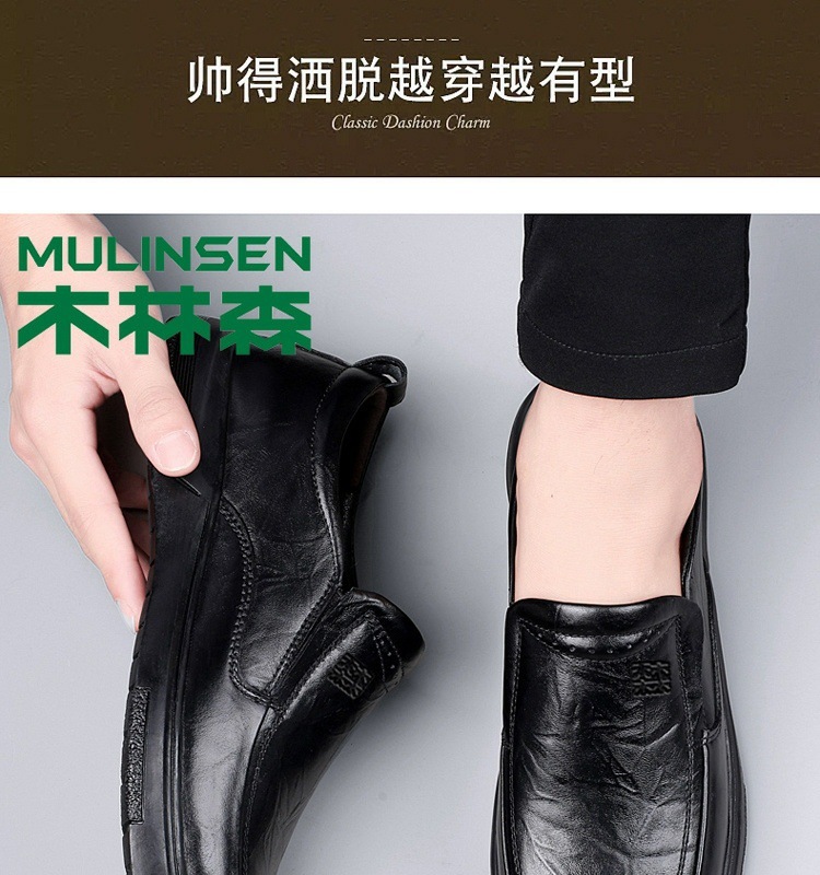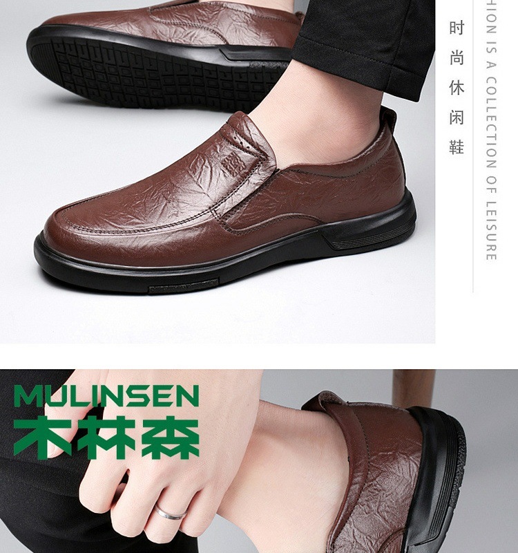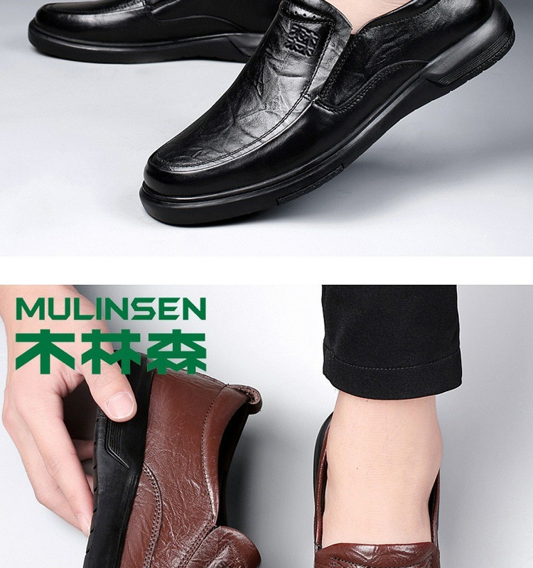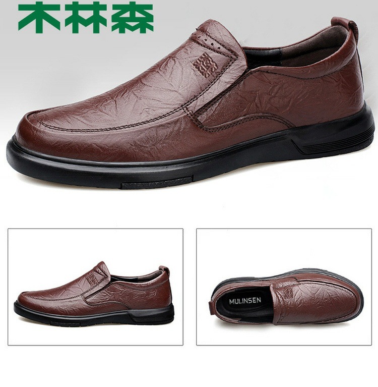 木林森は足のカジュアルな靴をかぶせています。男性の本革と秋冬の男性靴の中年のお父さんの靴はとても柔らかい底の柔らかい皮の怠け者の靴です。
