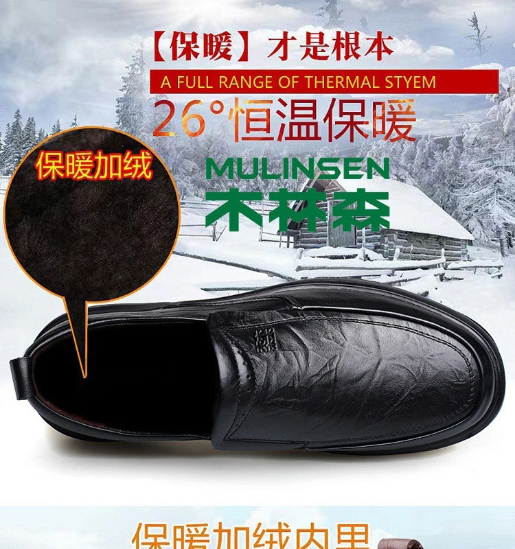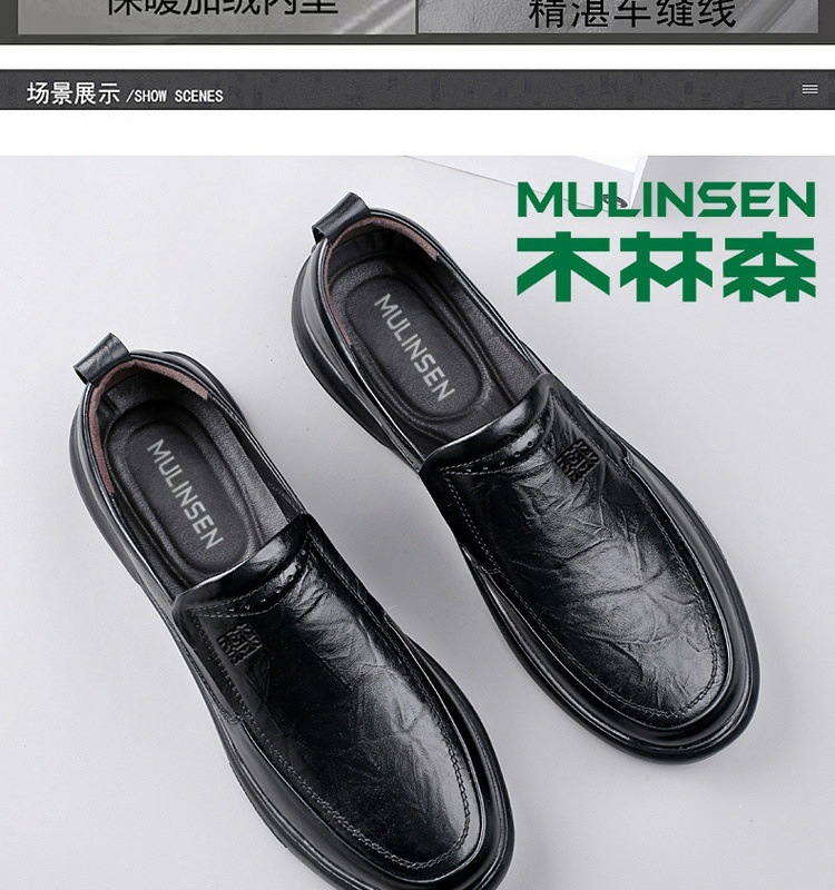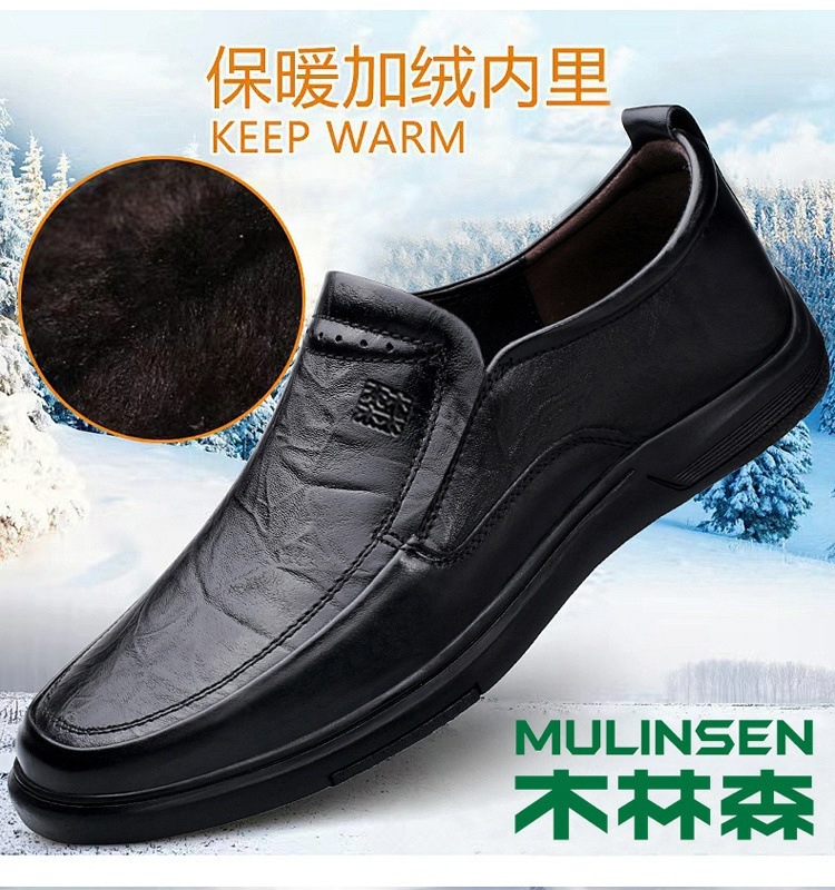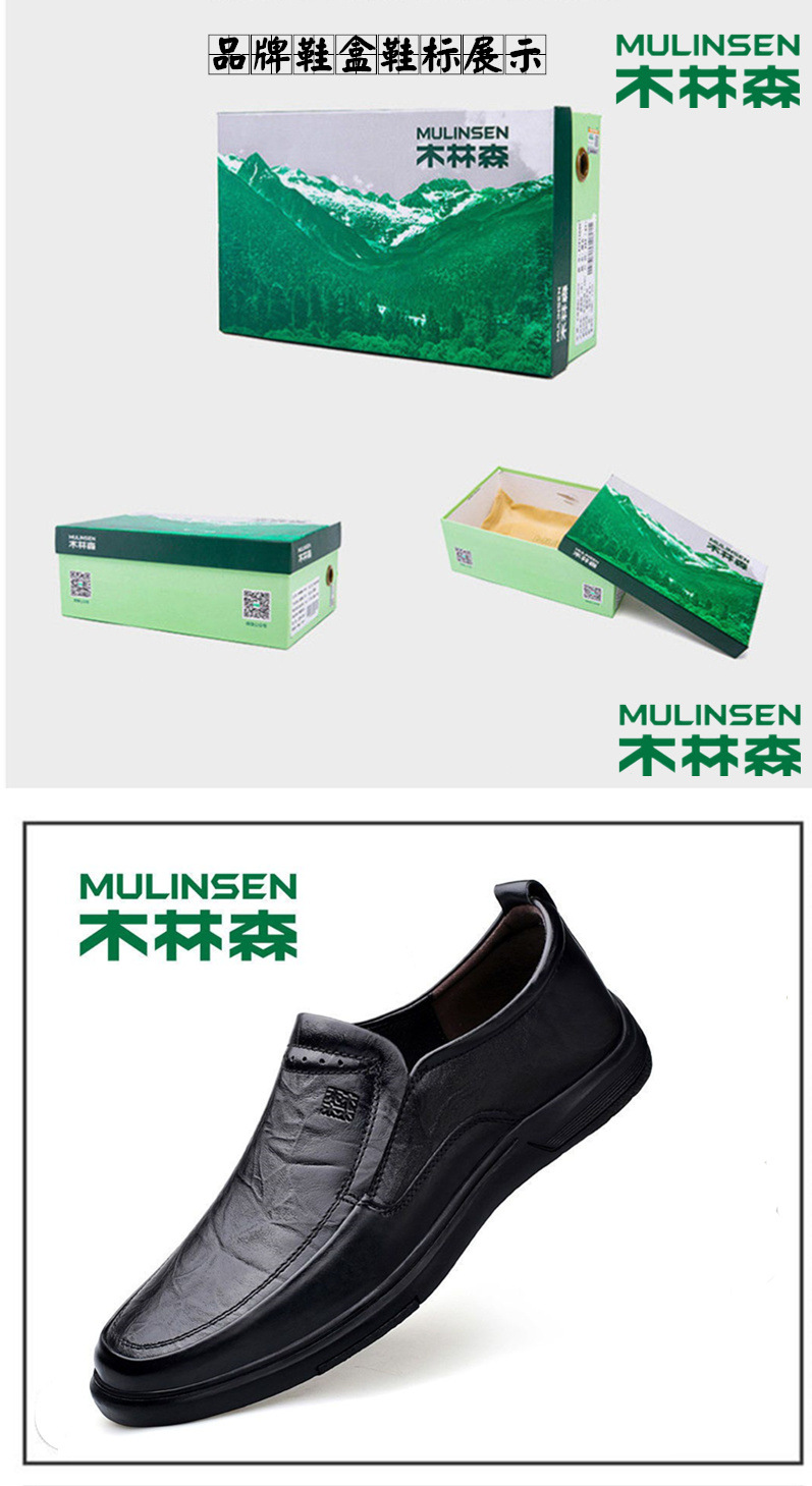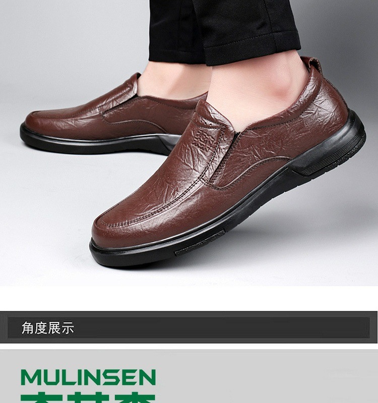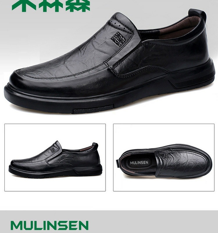 木林森は足のカジュアルな靴をかぶせています。男性の本革と秋冬の男性靴の中年のお父さんの靴はとても柔らかい底の柔らかい皮の怠け者の靴です。
