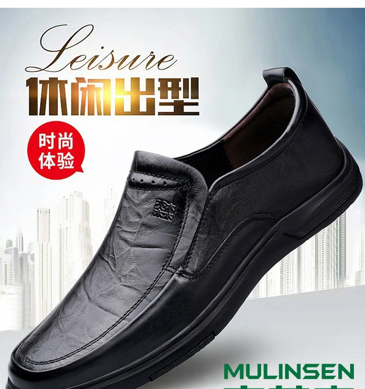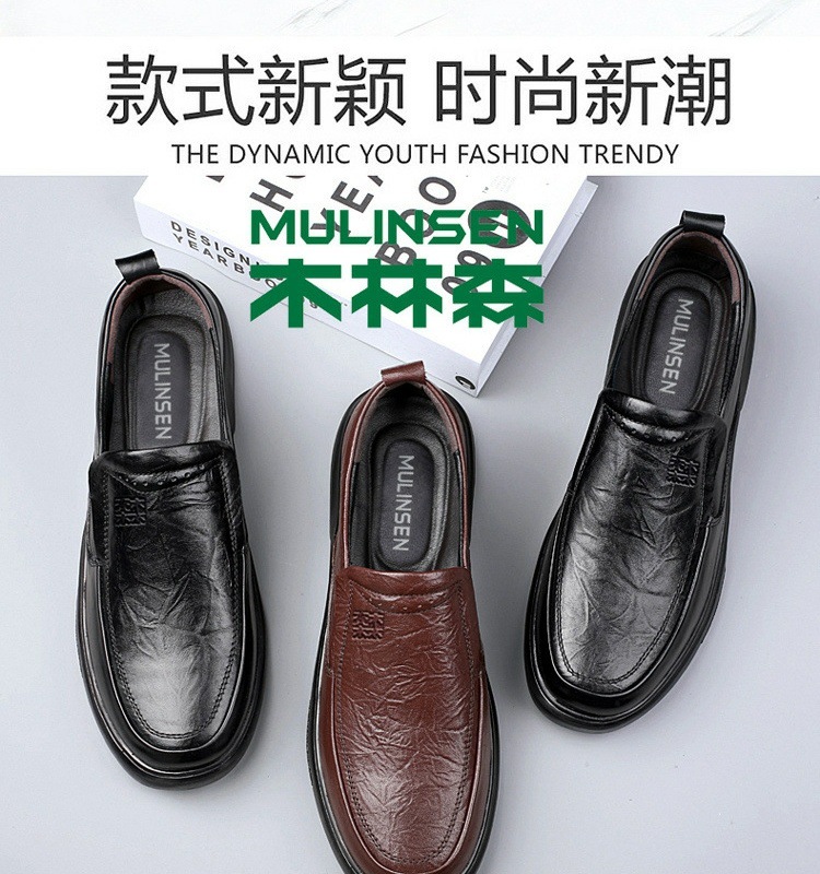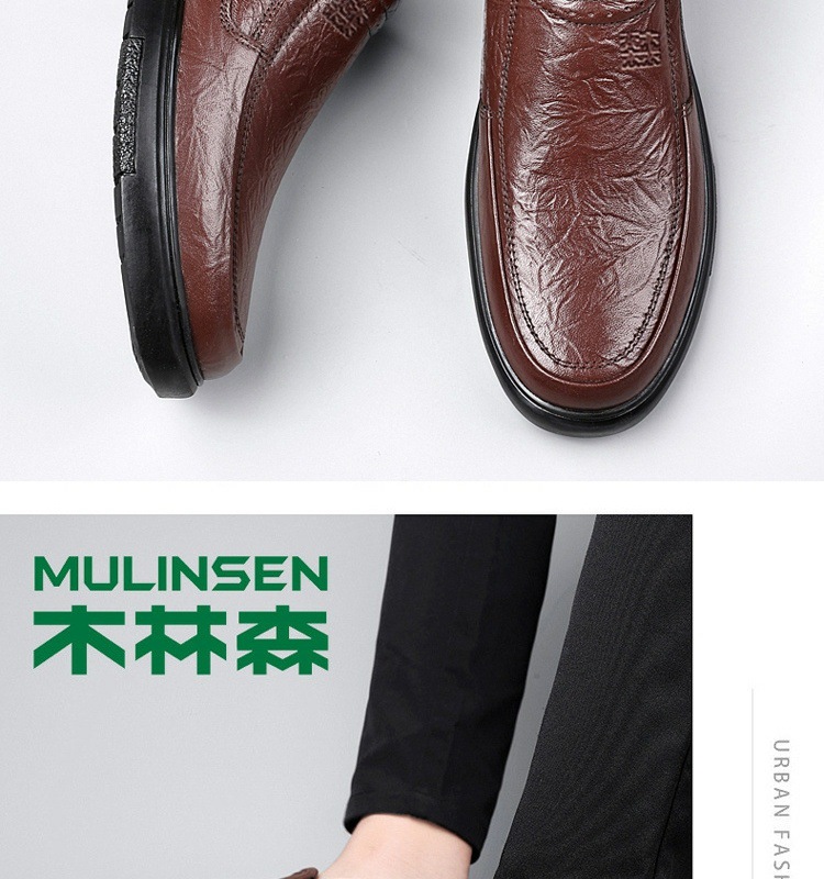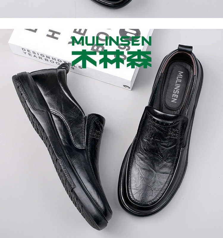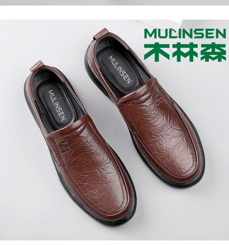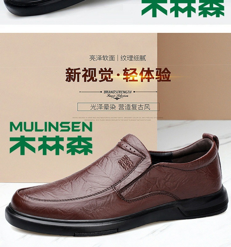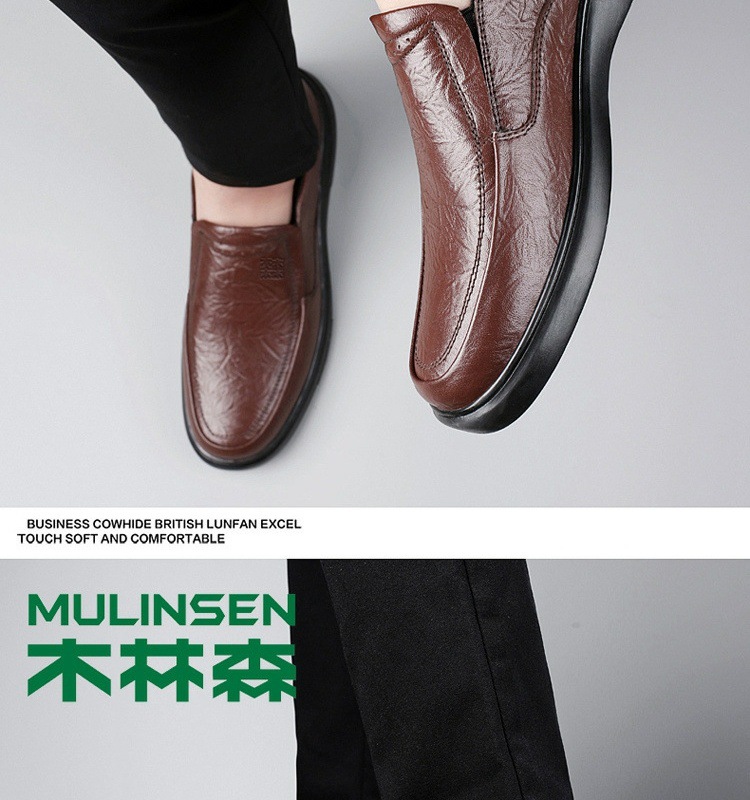 木林森男靴ビジネスカジュアル革靴本革ソフト底カバー足通気性トップ層牛革中年新型お父さん靴