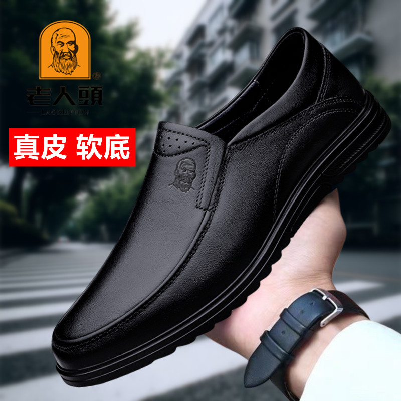 老人の頭の靴の男性の本物の牛革は高級なビジネスカジュアル靴の柔らかい底の滑り止めの中高年のお父さんの靴を漕いでいます。
