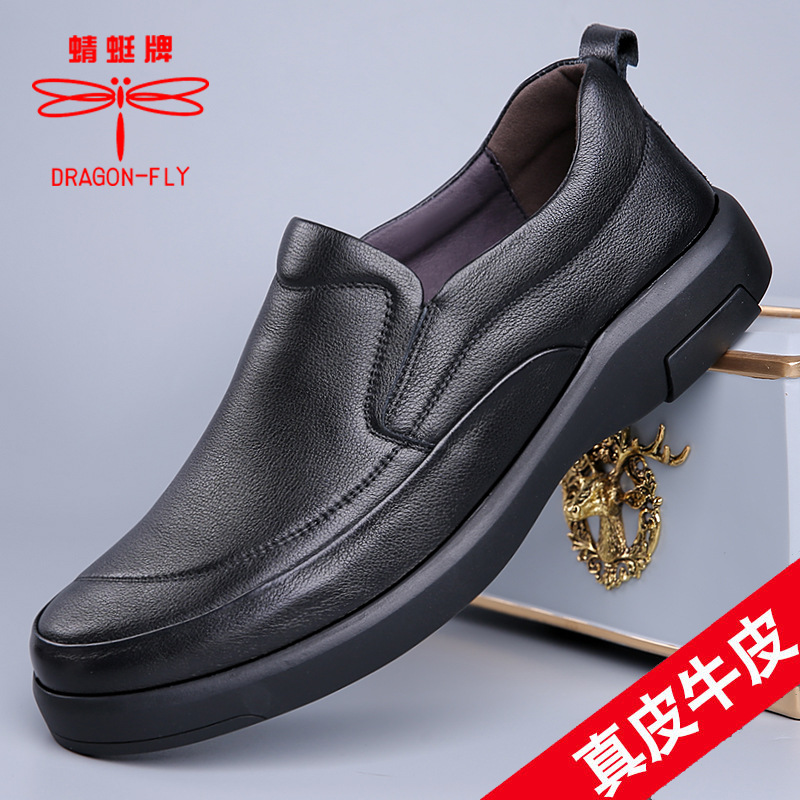 蜻蜓牌休闲 皮鞋男软底一脚蹬真皮男鞋高档牛皮防滑爸爸鞋透气鞋