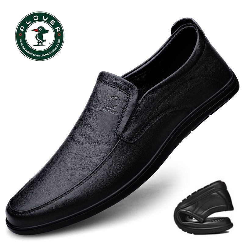 啄木鸟春秋季男士休闲皮鞋真皮透气软皮软底百搭一脚蹬豆豆鞋驾车