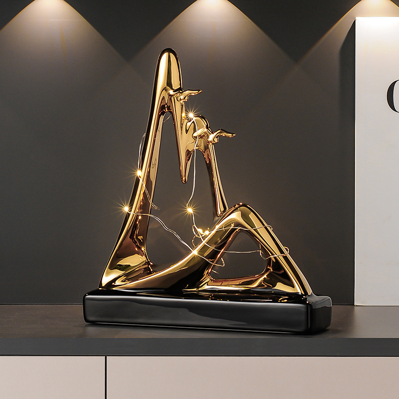 現代のシンプルな金山銀山の置物は豪華で高級なリビングルームのワインキャビネットのサイドキャビネットの高級感のある装飾品です。