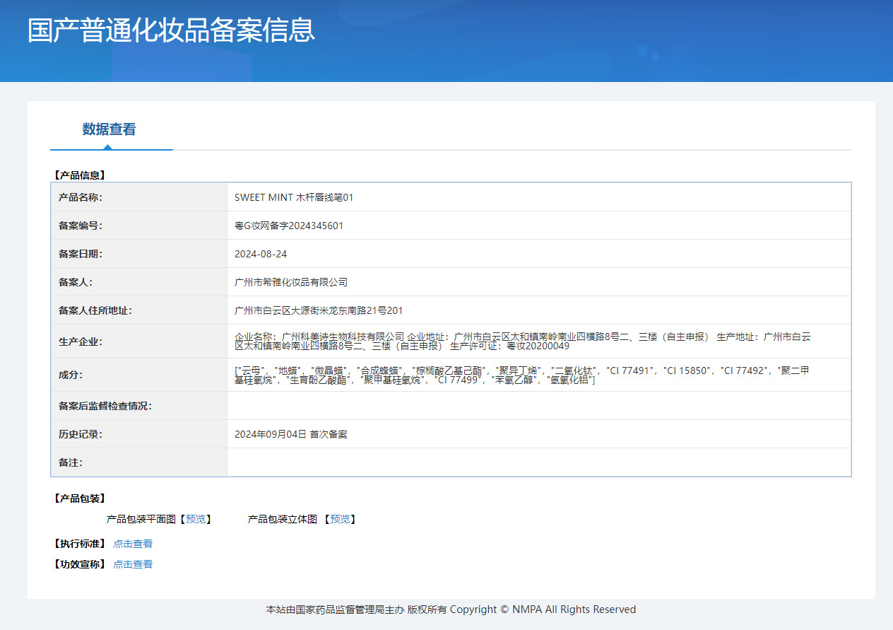 特殊化粧品登録証番号 広東省Gメイクアップネットワーク準備番号2024345601