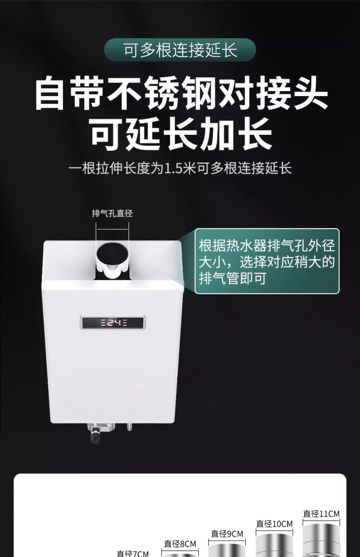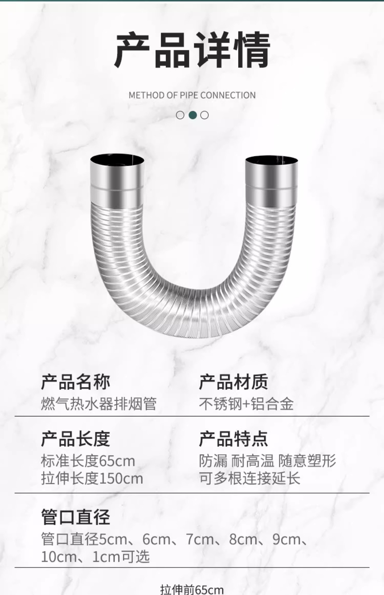 燃气热水器排烟管防爆不锈钢伸缩排气软管排风管道配件大全加长