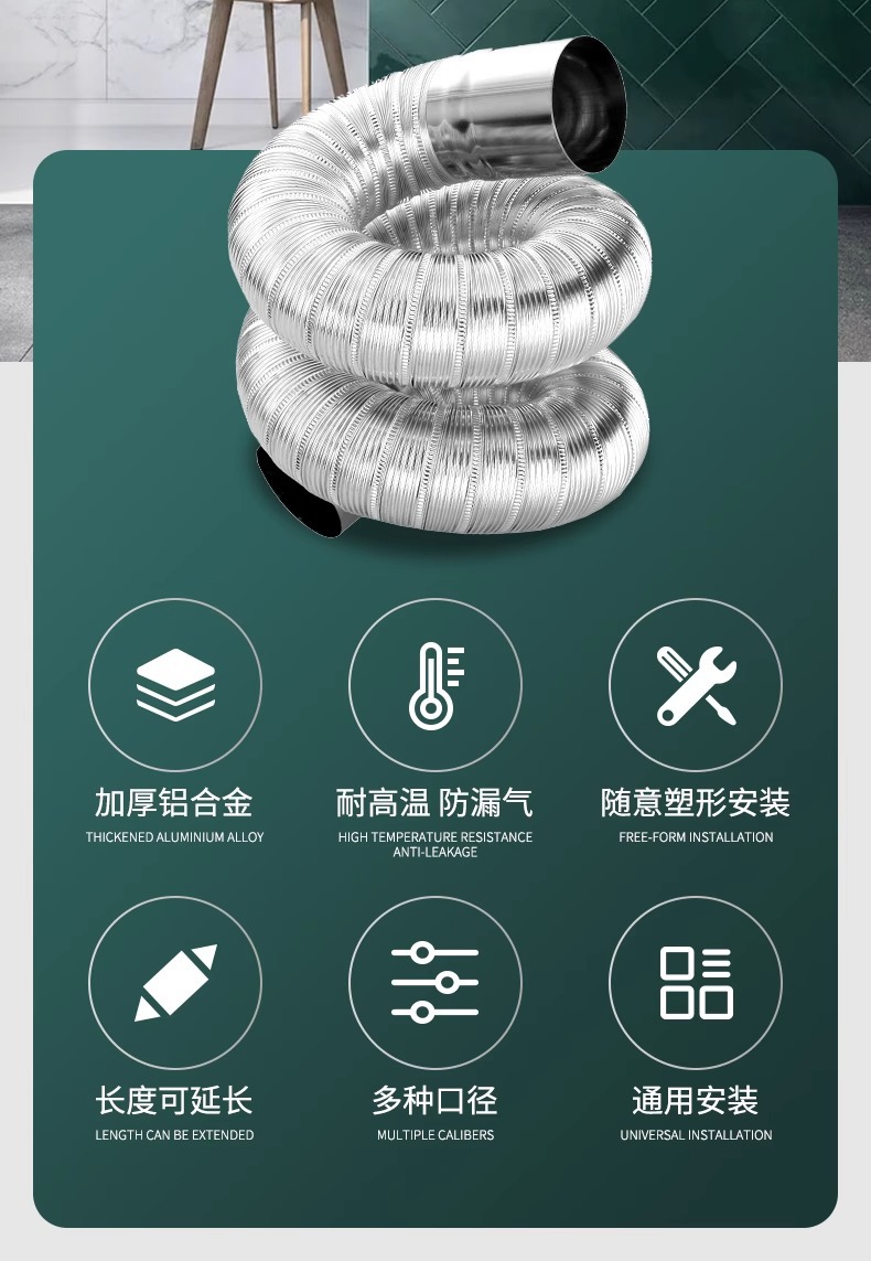 ガス給湯器排煙管純アルミニウム伸縮ホース強排式ステンレスパイプ排気管延長部品