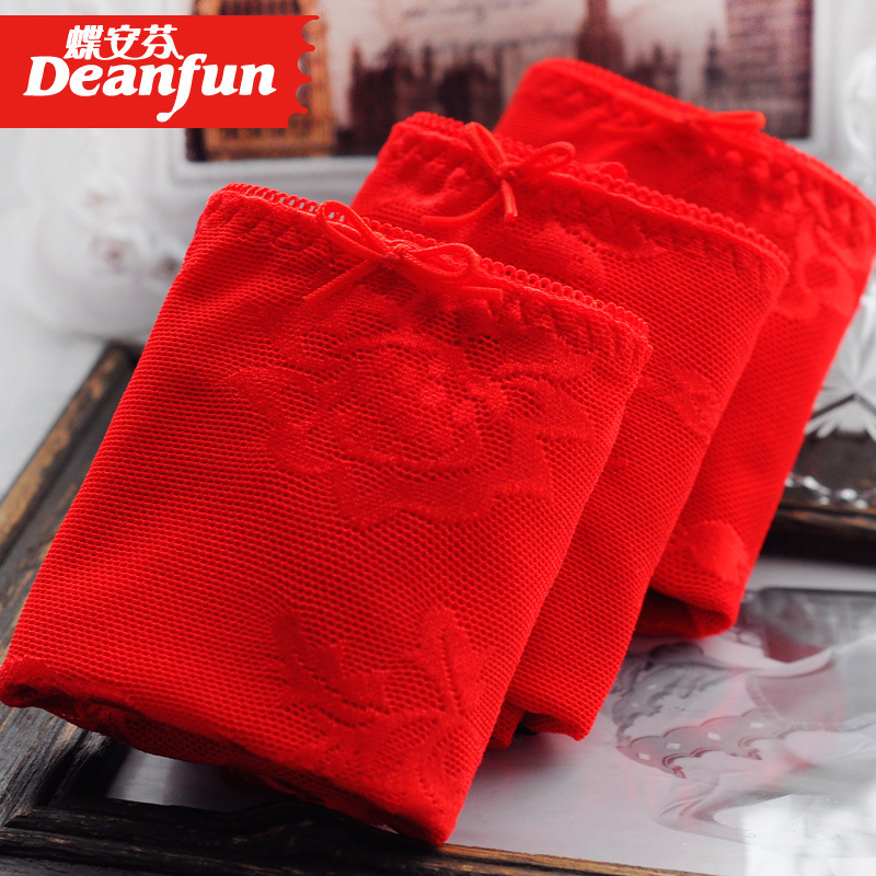 蝶安芬経典2本箱入り弾力綿レース大紅本命年ウエスト平角下着レディース1700