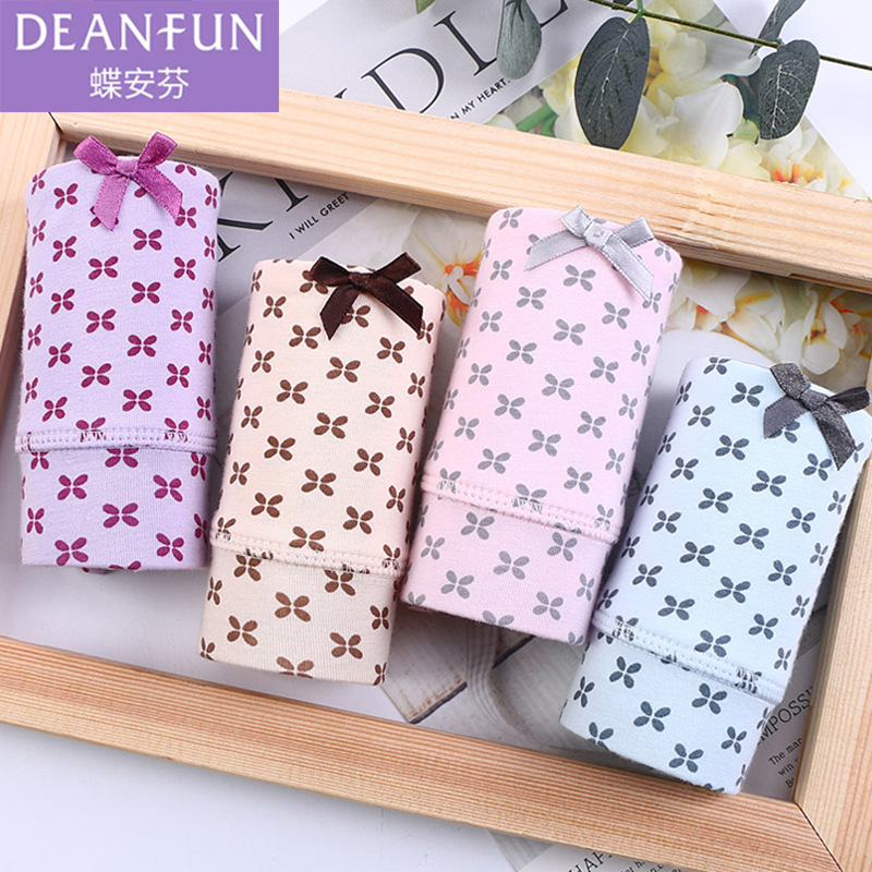 蝶安芬の清新なプリントの金の女性の下着のウエストは腰を包んでお尻の快適な綿の生地の平角のズボンの女子学生の底のズボンを包みます。