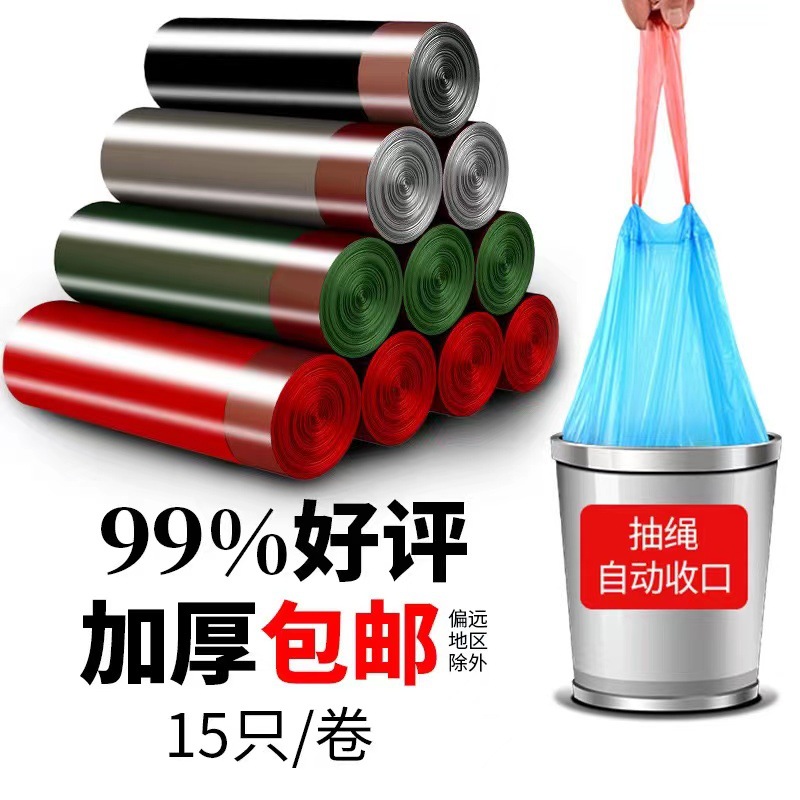 巾着式ゴミ袋を厚くして家庭用キッチントイレの使い捨てゴミ袋の黒い手提げ袋メーカーに郵送します。