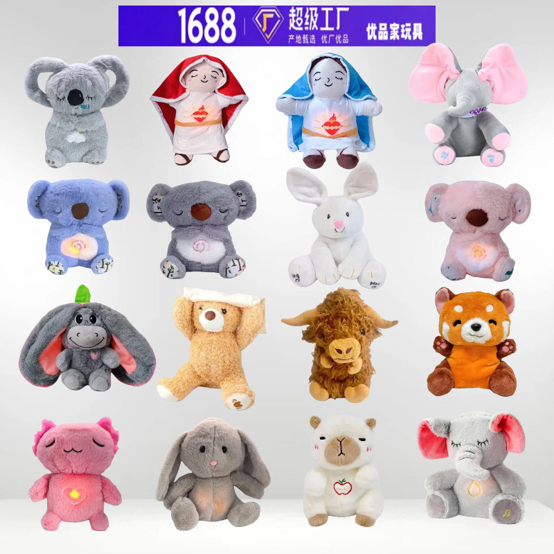 呼吸するクマの小さなカワウソぬいぐるみ、音声付き、子供のための安眠を促す人形、既製品、音楽で眠りを誘う