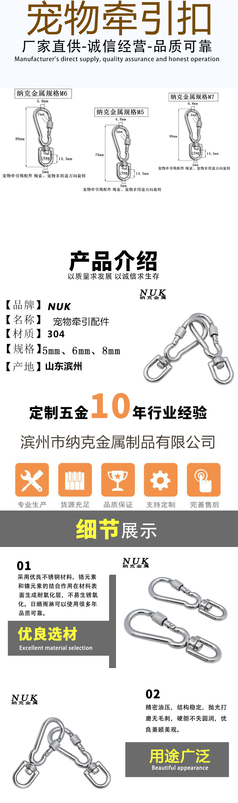 ソース卸売ペット牽引ロープフックステンレス犬チェーンヘッド自在回転8字リングペット接続リング
