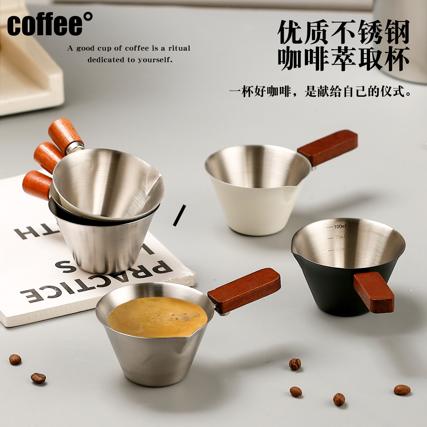 亚马逊304不锈钢咖啡萃取杯意式浓缩咖啡量杯带刻度咖啡液萃取杯