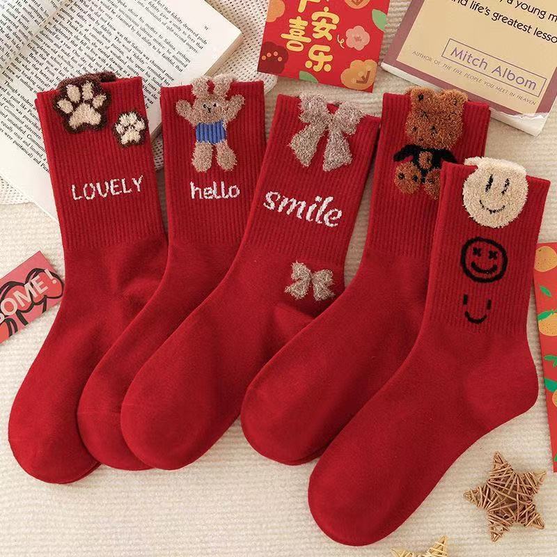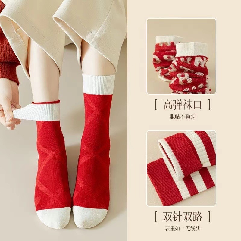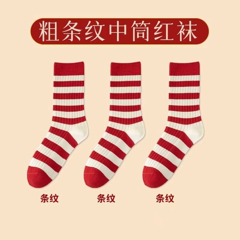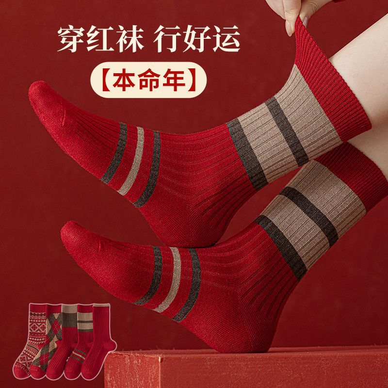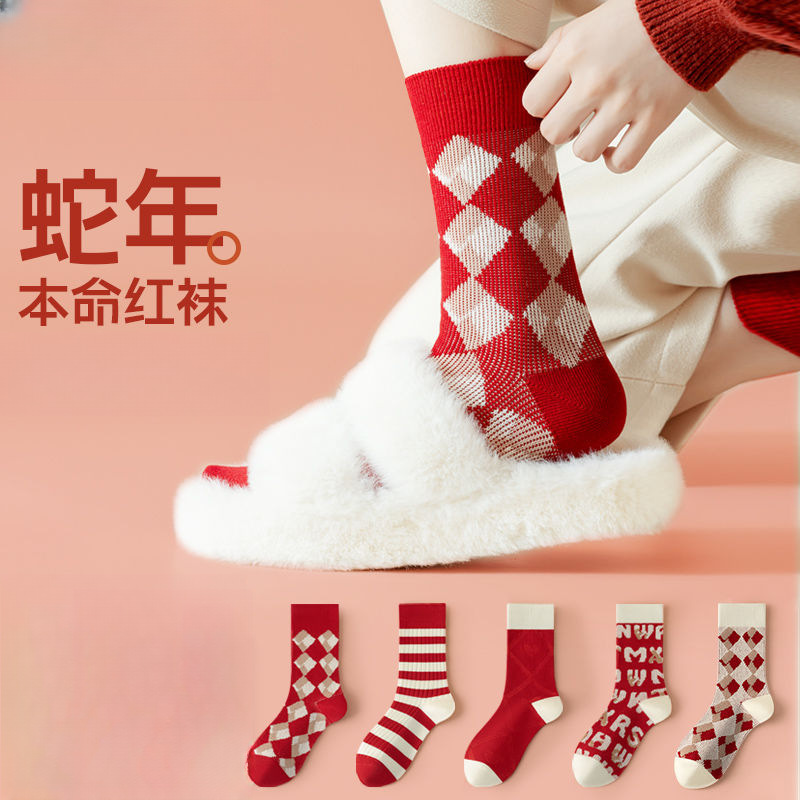 蛇年赤い靴下本命年結婚男女中筒綿靴下冬保温カップル長筒国潮風卸売り