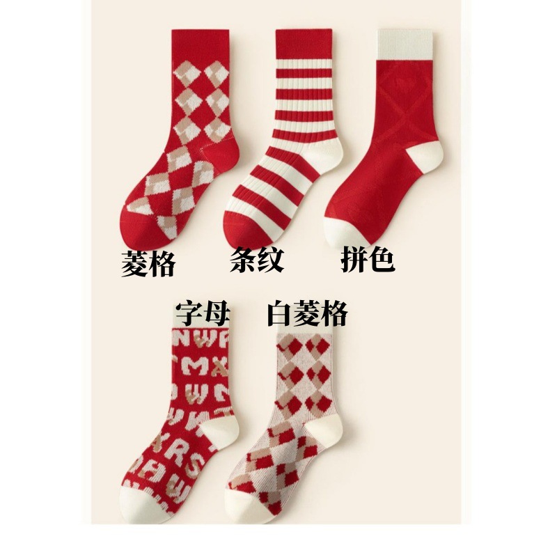 新年红袜子男女同款女袜秋冬新款中筒不掉色本命年大红喜庆爆款袜