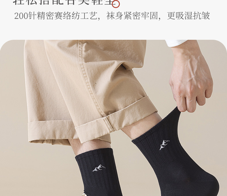 靴下 メンズ 雪山刺繍 多用途 スポーツ 日本風 ミドル丈 2025年新作 人気商品 卸売 湖北省諸暨市 源泉工場
