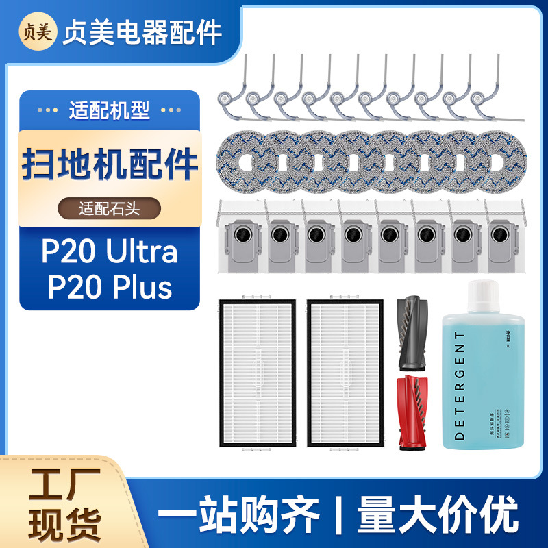 贞美适配石头P20 Ultra/P20 Plus扫地机配件集尘袋滚刷滤网清洗液