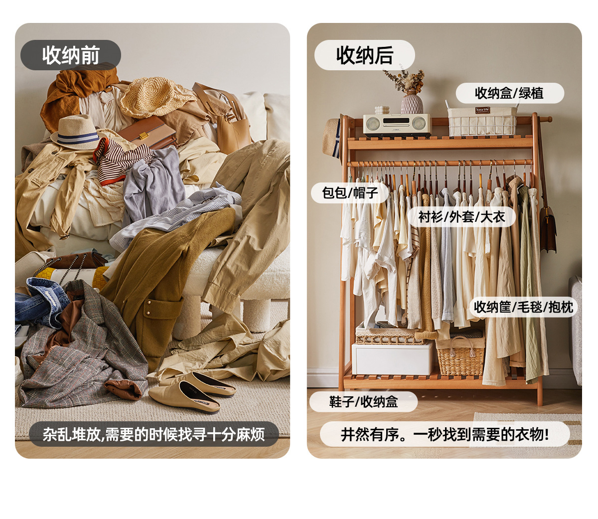 实木衣架落地衣帽架卧室客厅家用脏衣篓置物架床头隔夜挂衣服架子