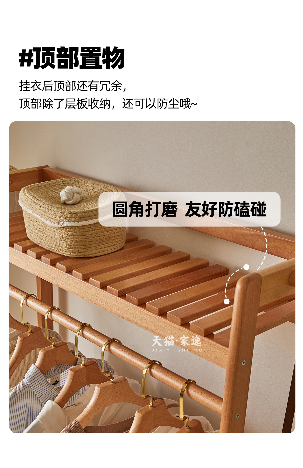 無垢材のコートラック床置き寝室ルームシンプルな洋服ラック引き出し付き家庭用小型衣類収納ラック
