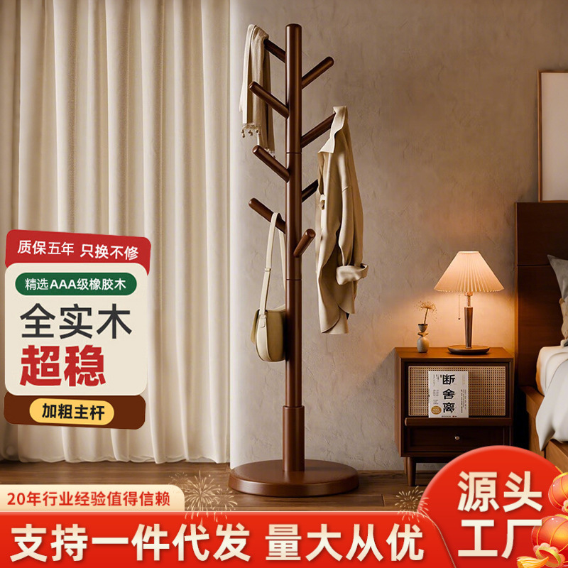 木製ハンガー縦式コートラック床置き寝室部屋ハンガー簡易シングルハンガー家庭用服棚