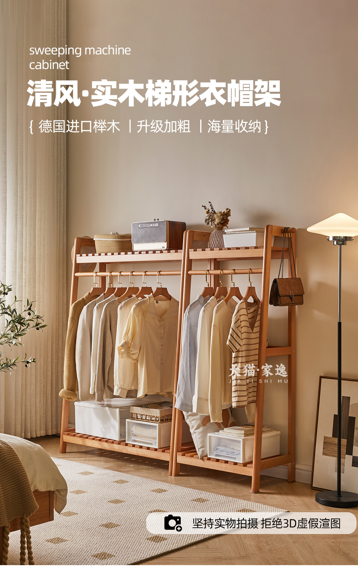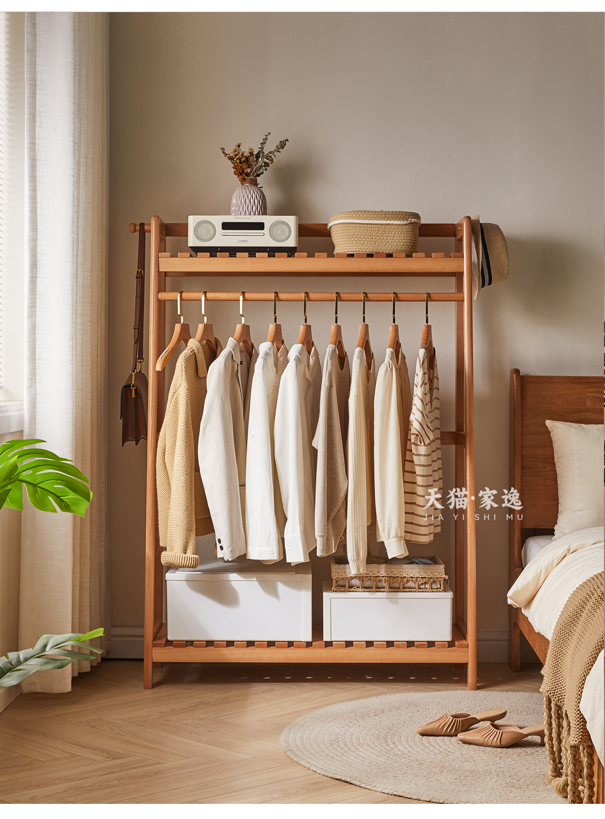 実木ハンガーが床に落ちた寝室ハンガー家庭用フードラック部屋に服を置く棚ベッドの尾収納棚