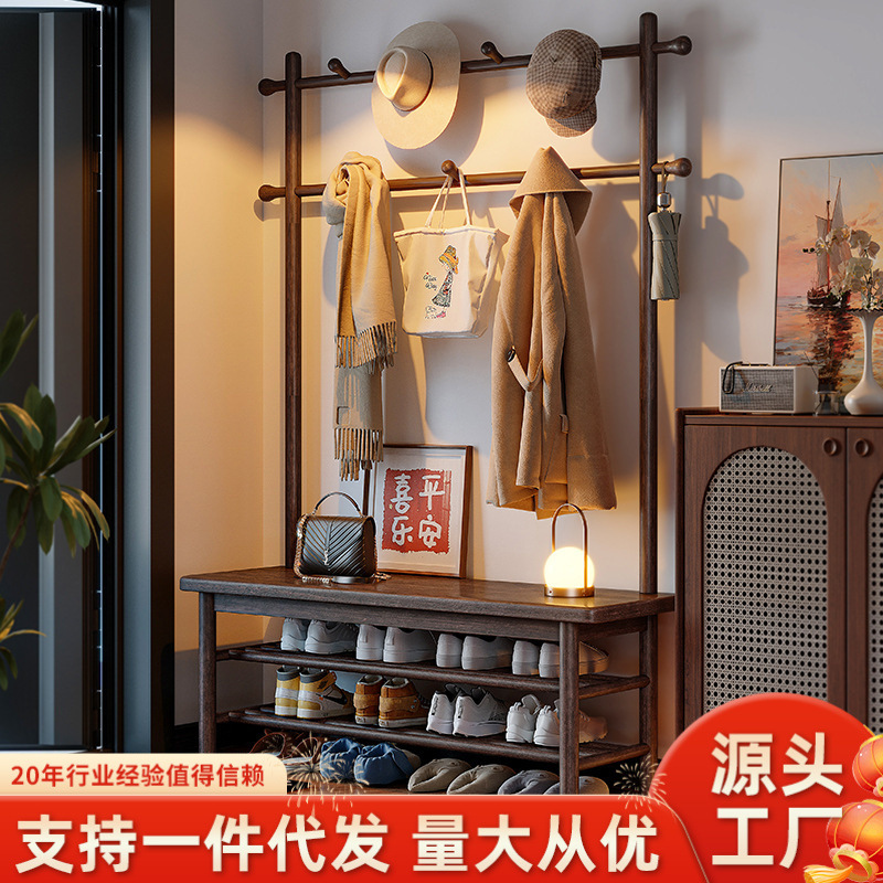 木製靴交換ベンチ一体型洋服掛け玄関靴棚玄関ホール用靴収納ベンチ付き洋服掛け家庭用靴履きベンチ