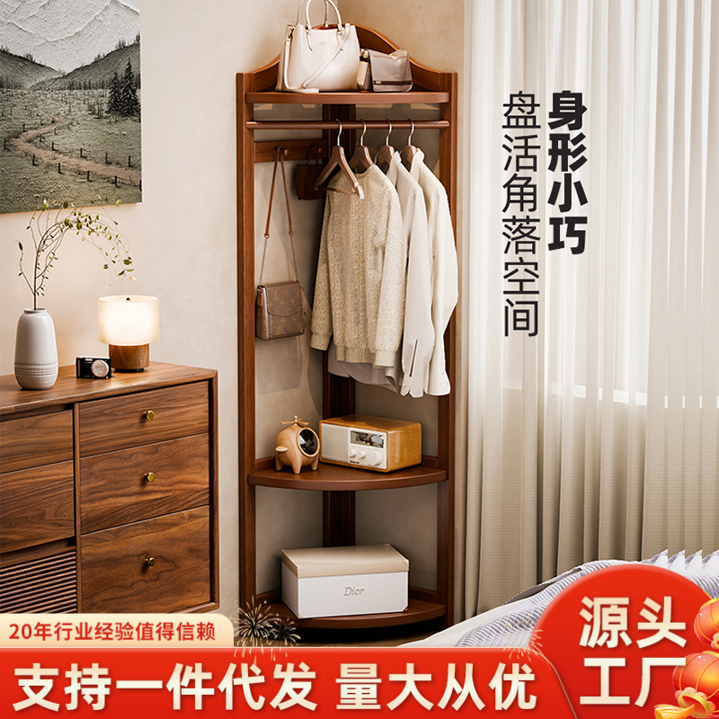 实木转角衣帽架落地卧室挂衣架家用衣服架子床头床尾拐角置物架