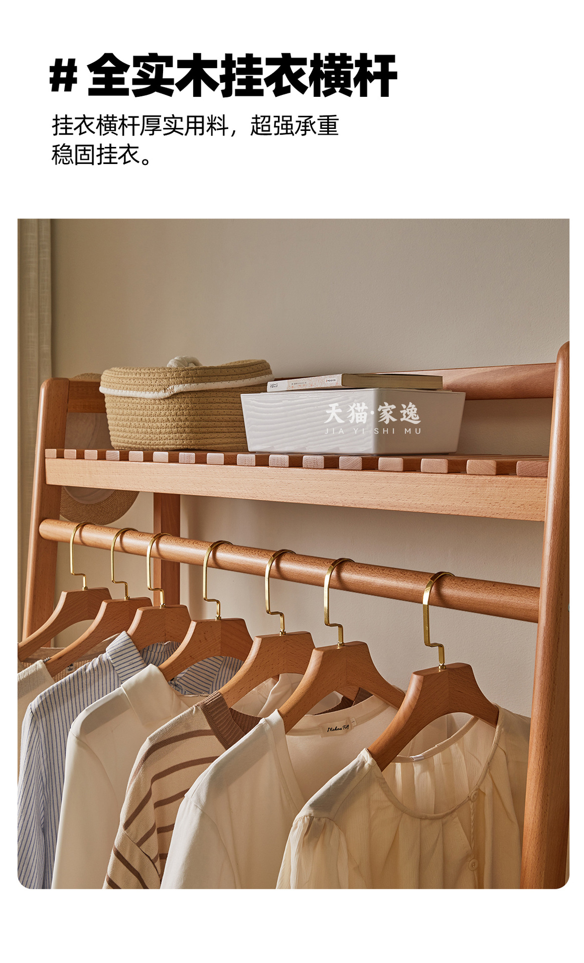实木衣架卧室落地挂衣架家用衣服置物架子室内晾衣架木质衣帽架子