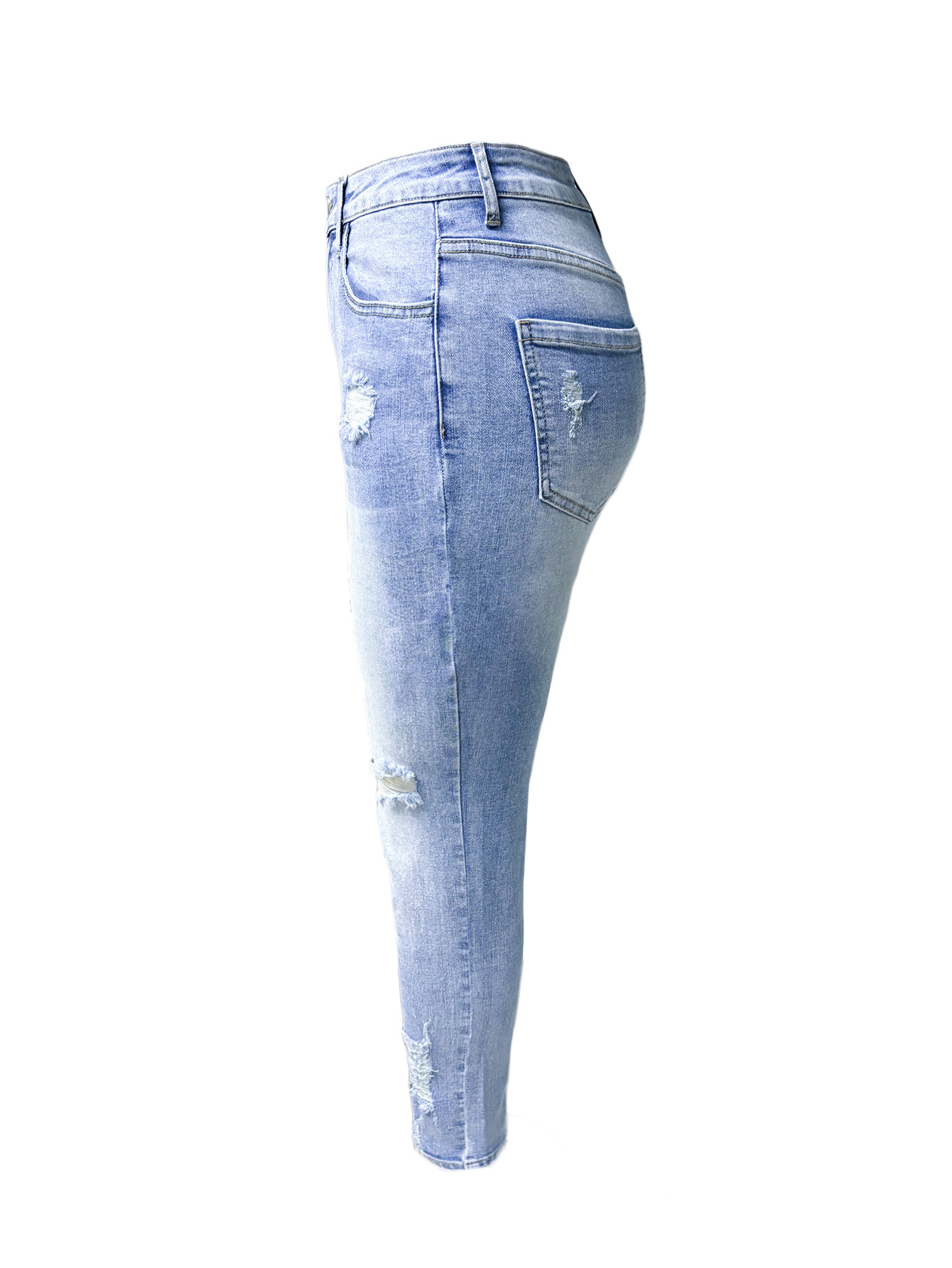 Tl 697穴が開いたデニムのワイドパンツとマイクロラッパジーンズ