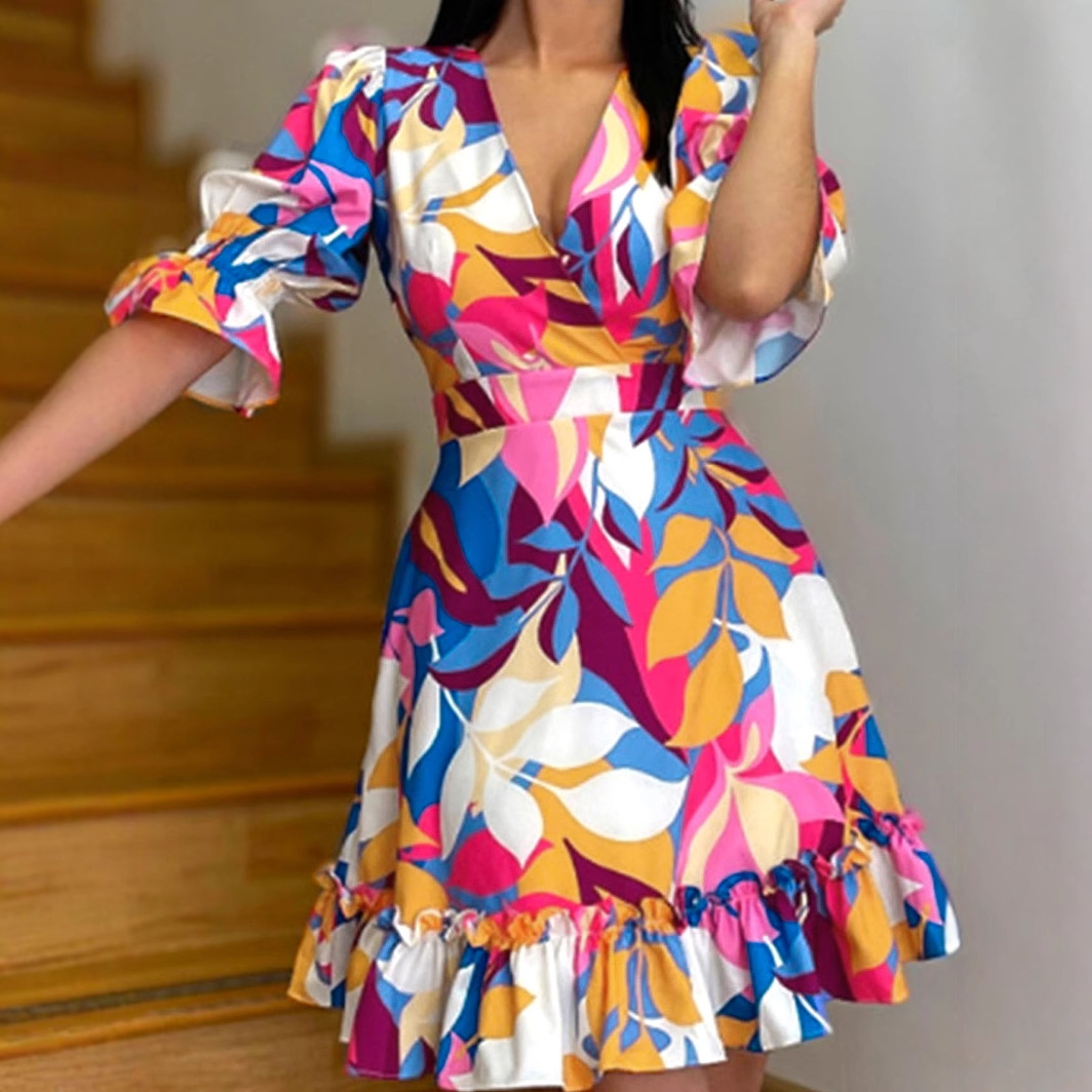 Mh 927クロスボーダーのレトロなファッションの流行に合わせてカジュアルな蓮の葉の辺を修理してセクシーなワンピースをプリントします。