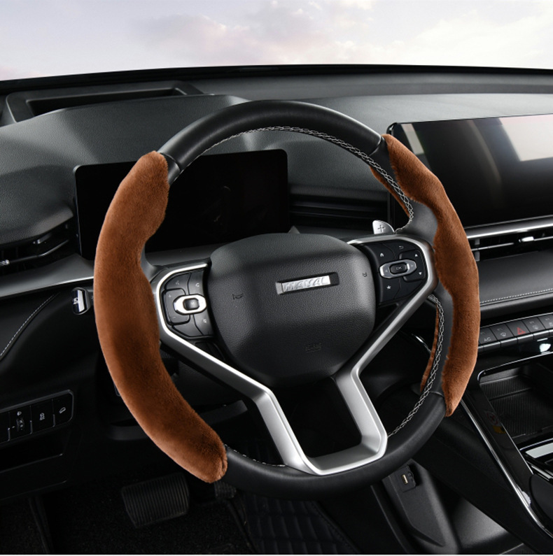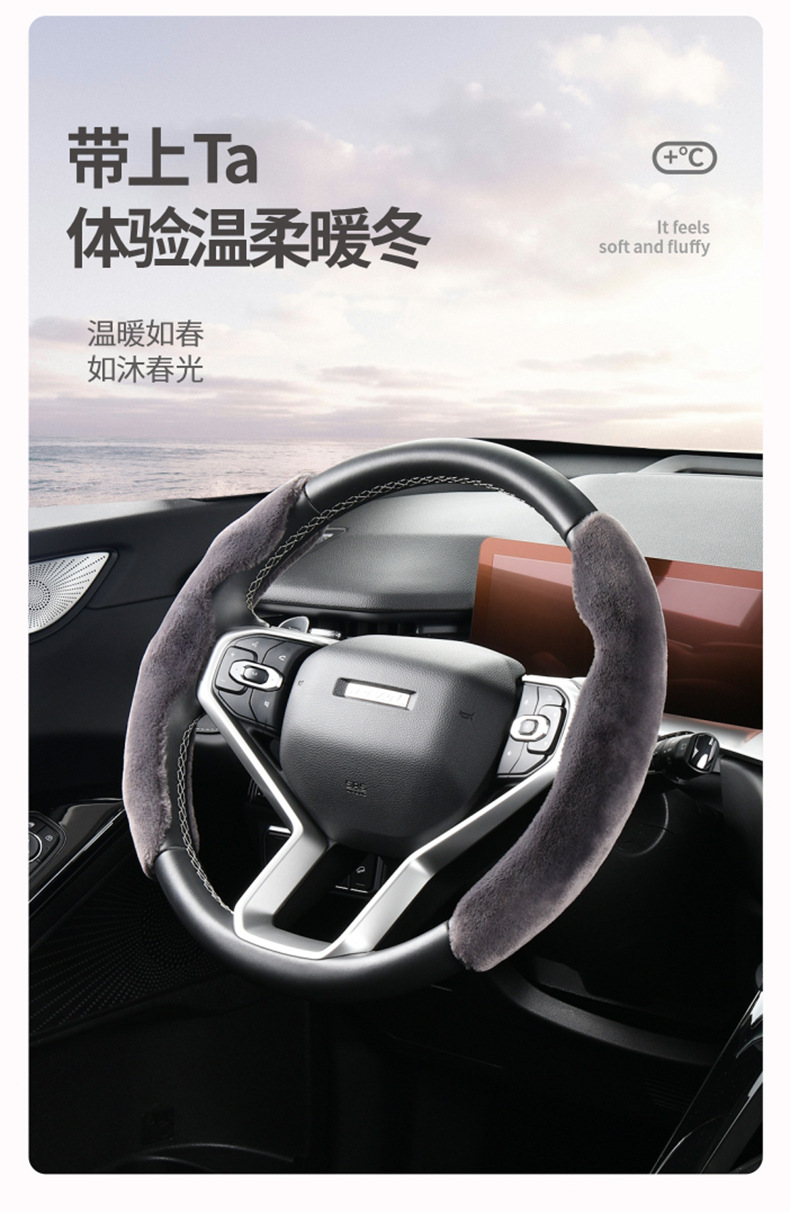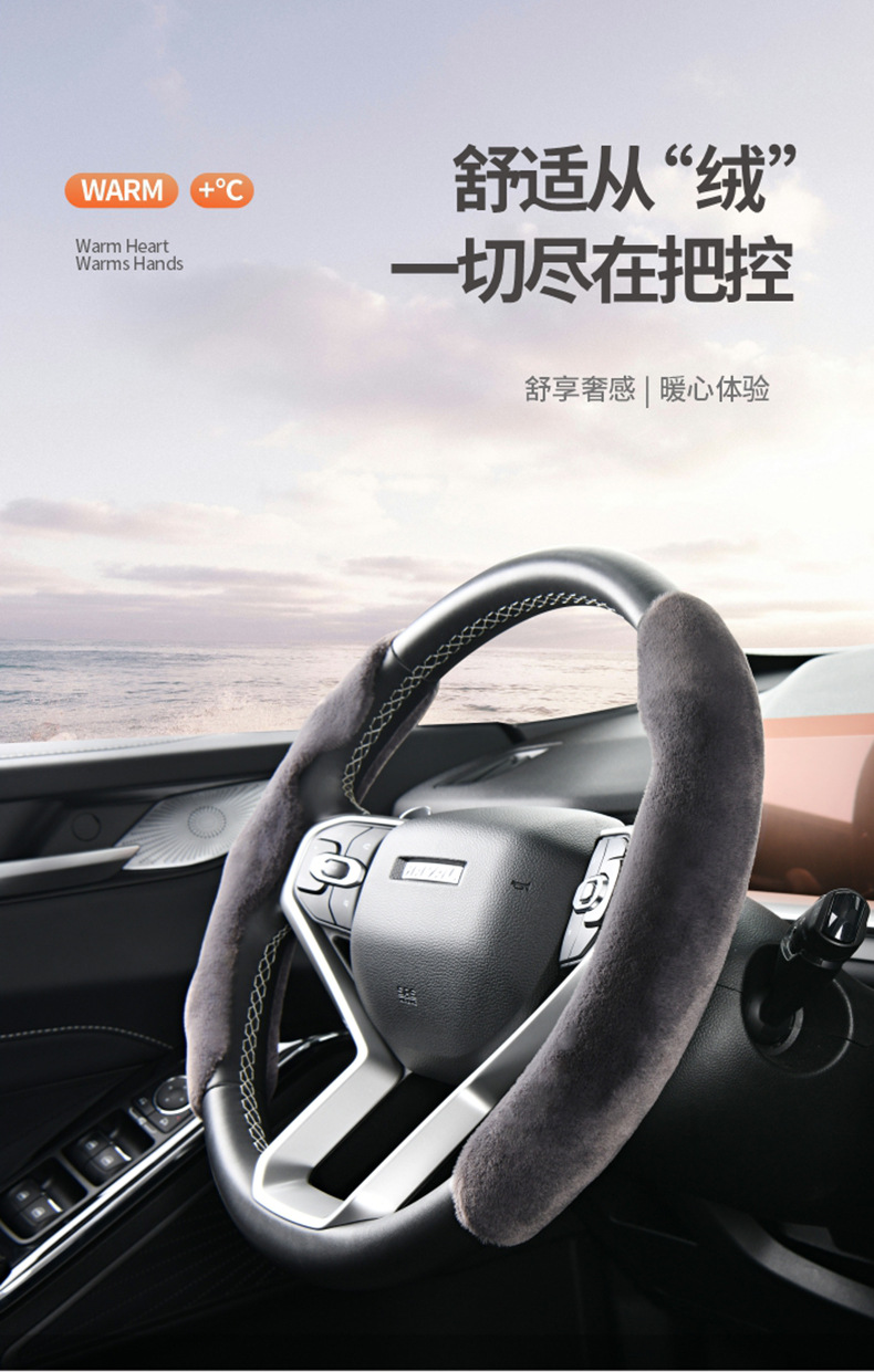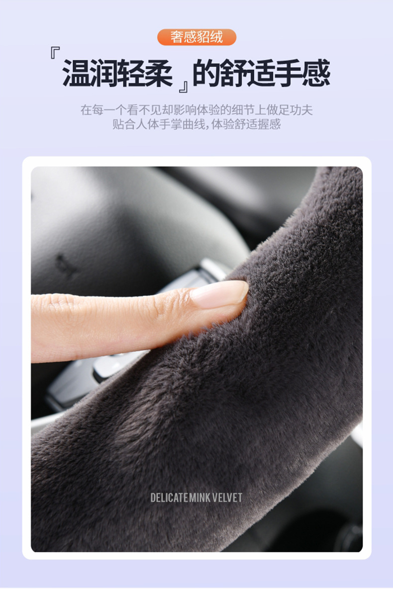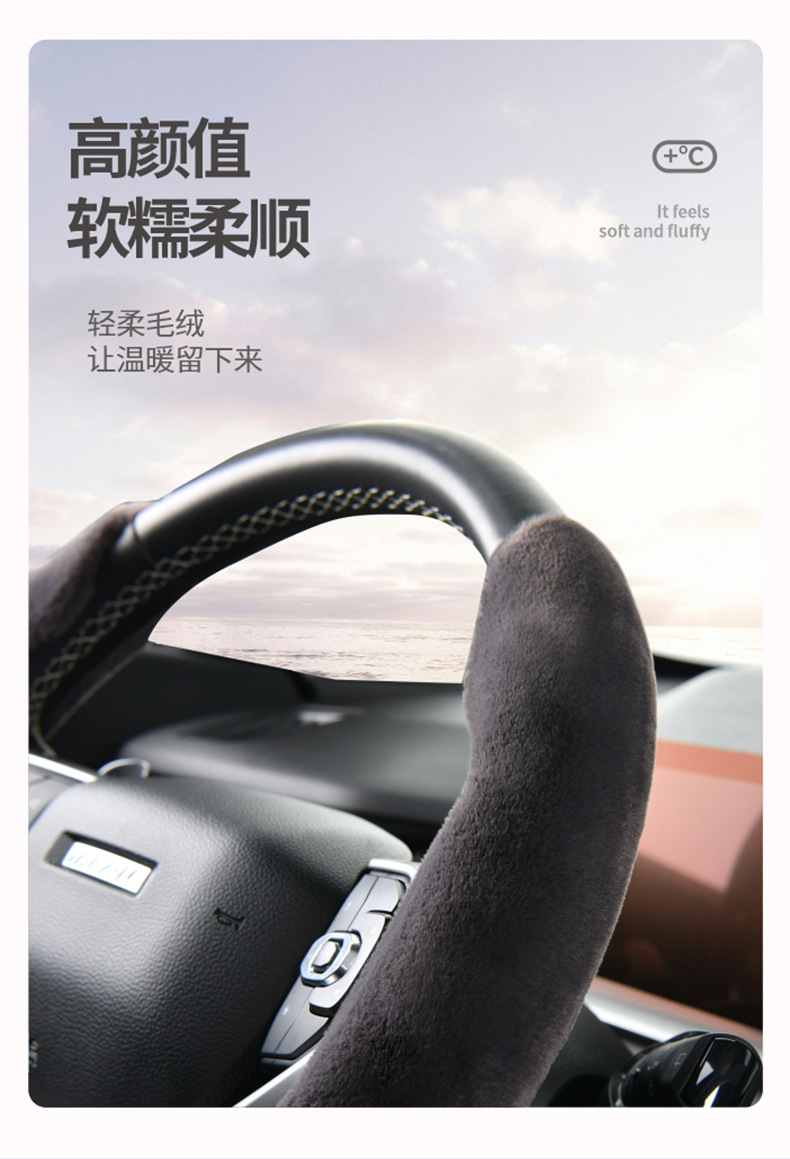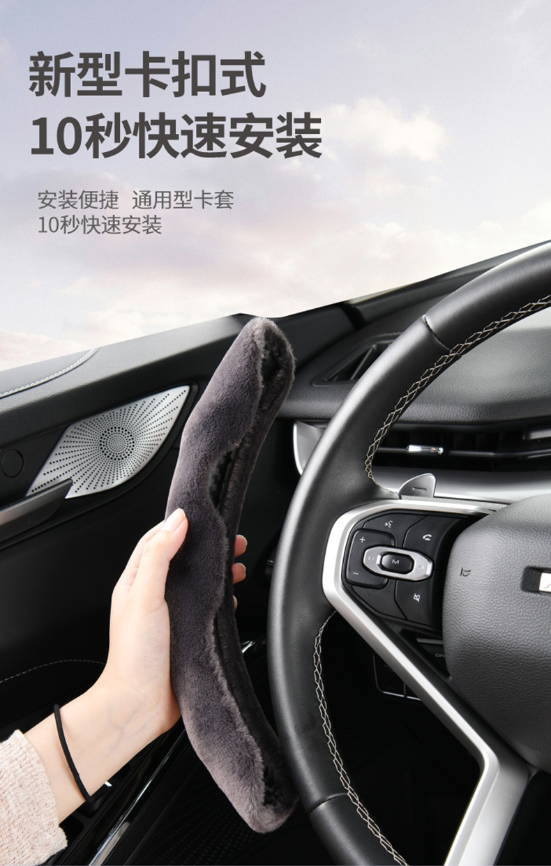 新款毛绒方向盘套材质冬季保暖通用毛绒方向方向盘卡套冬季方向盘