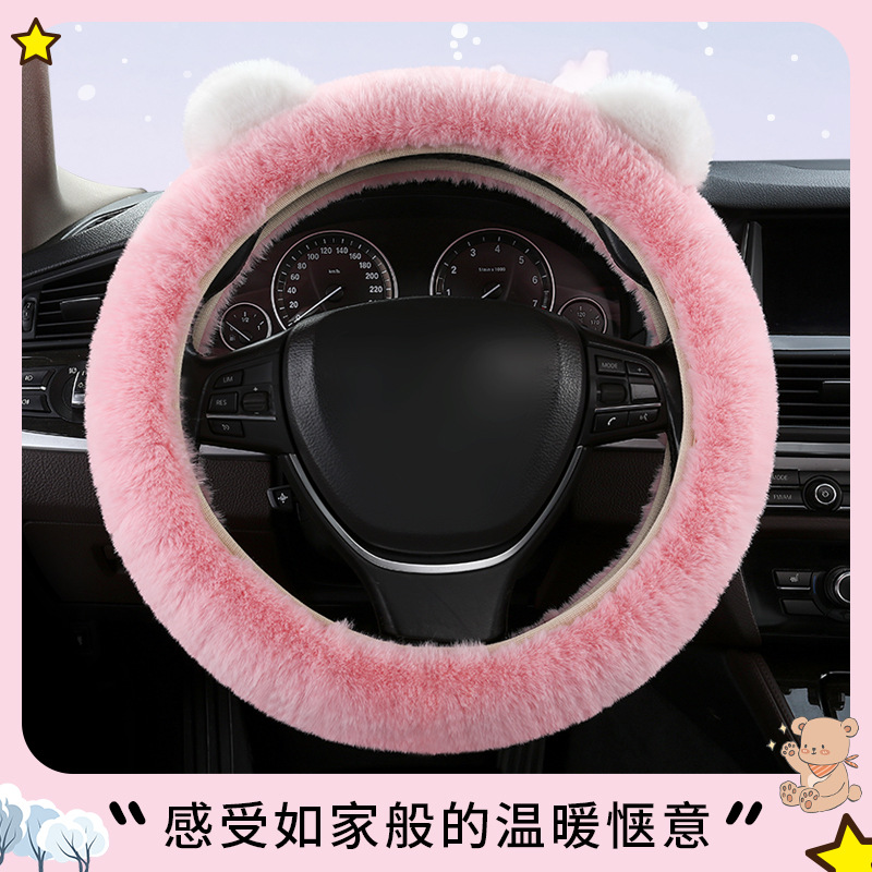 冬のぬいぐるみのハンドルカバーの高級感アニメの短いぬいぐるみの新しい車のハンドルカバーの女性の冬の保温