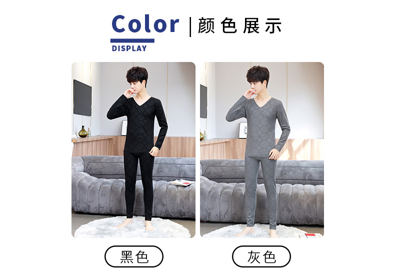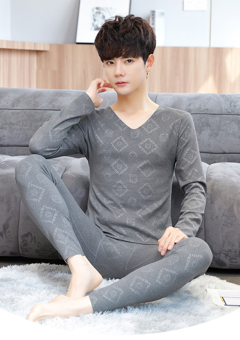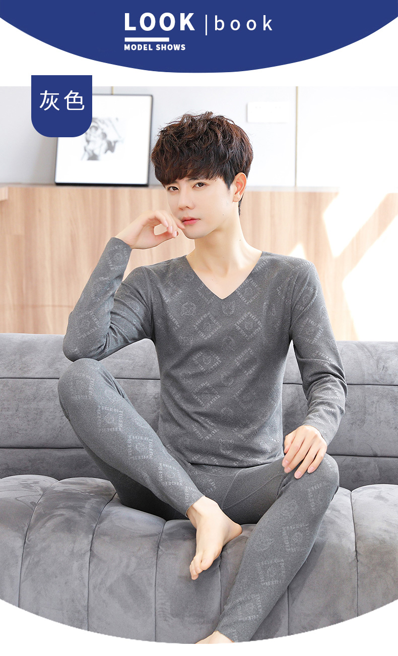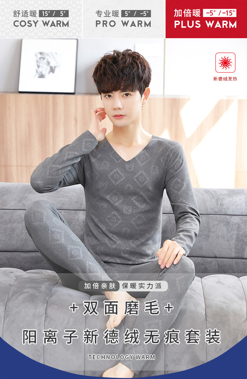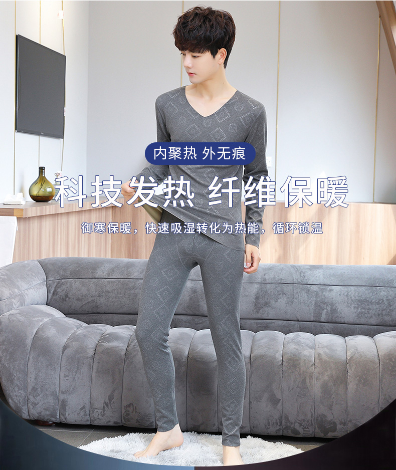 男性の保温下着の徳絨無痕vネックの肌着発熱ボトムシャツの男性タイプの青年秋衣秋ズボンセット