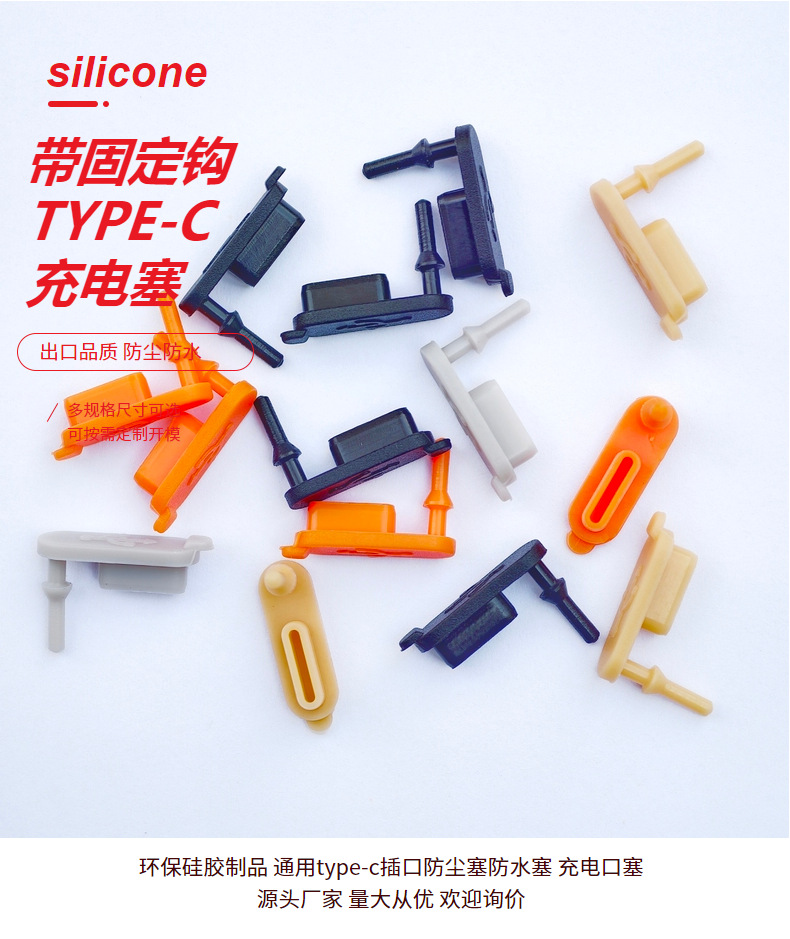 USB Type-Cポート用シリコン防塵プラグ、固定フック付き、防水シリコンプラグ、Type-Cシリコンプラグ、カスタム対応