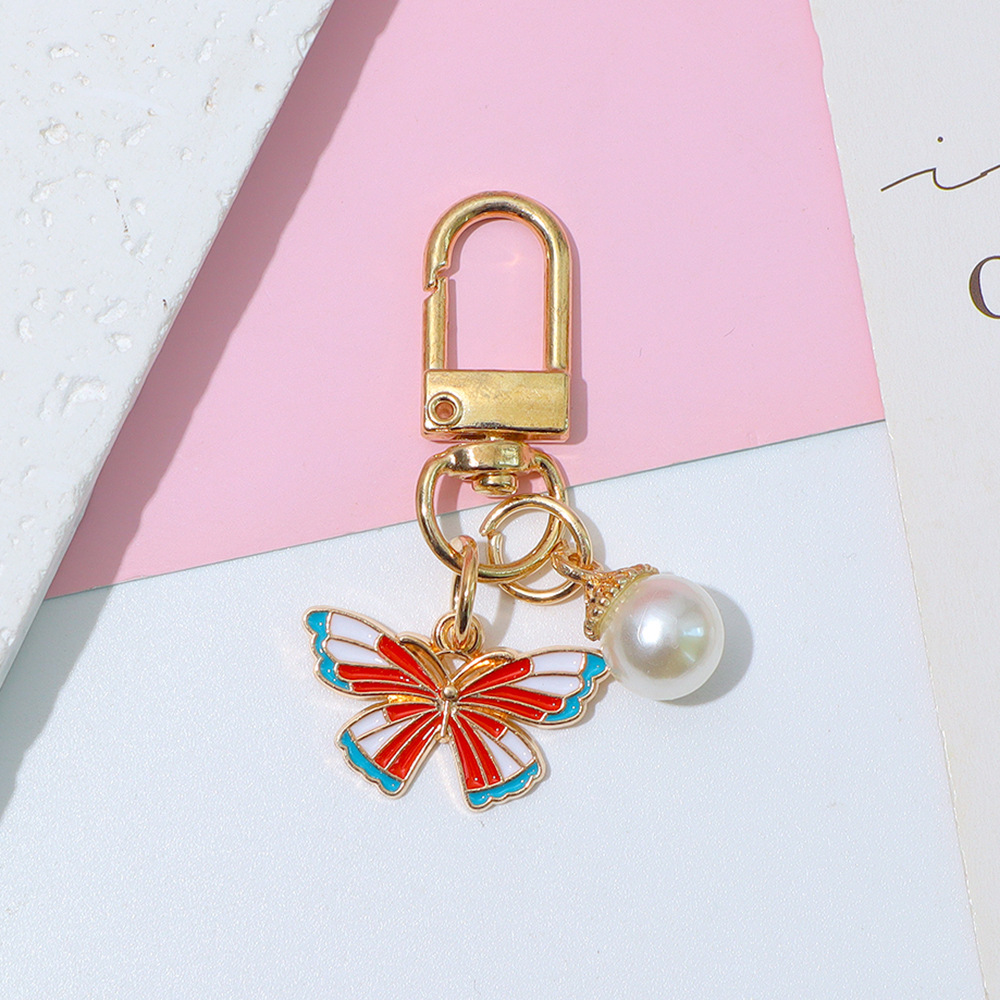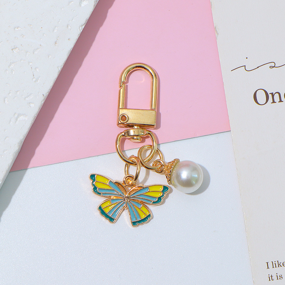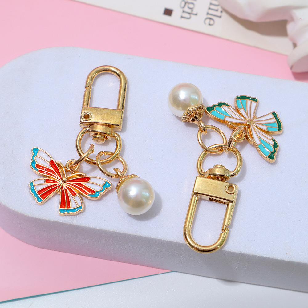 小清新真珠蝶ペンダントキーホルダー創意少女バッグ携帯ケースAirpod装飾プレゼント