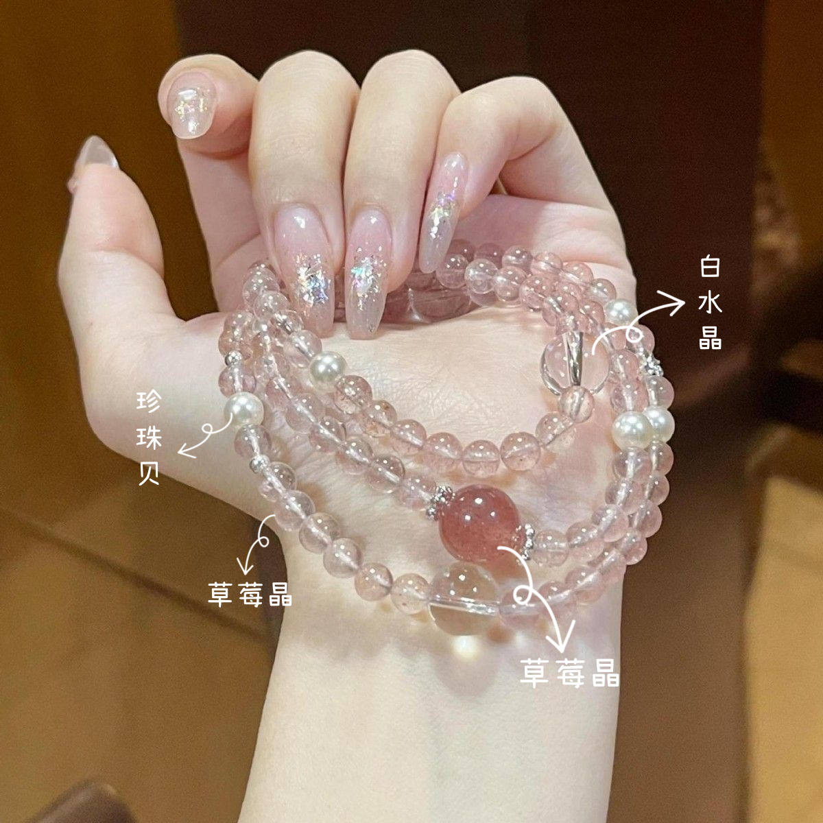 天然6mmいちご晶と白水晶真珠貝三輪鎖小衆デザイン女子モデル小清新手串