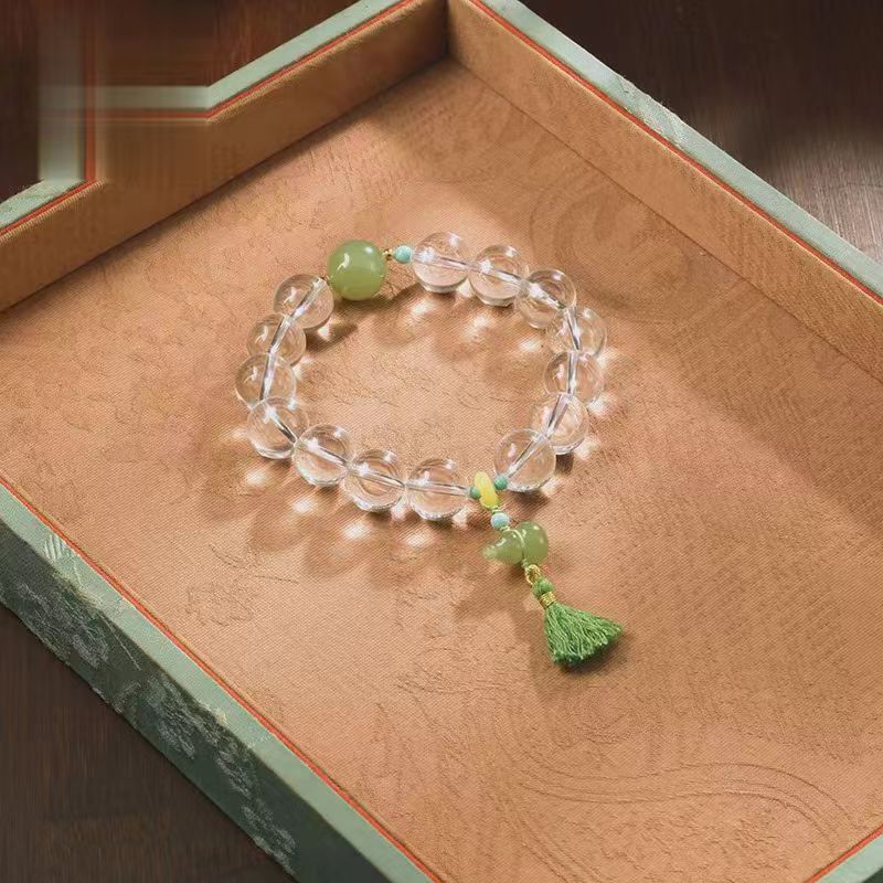 天然12mm白水晶手串女性コーディネート和田玉瓢箪ペンダント新中国式女性名族風アクセサリー