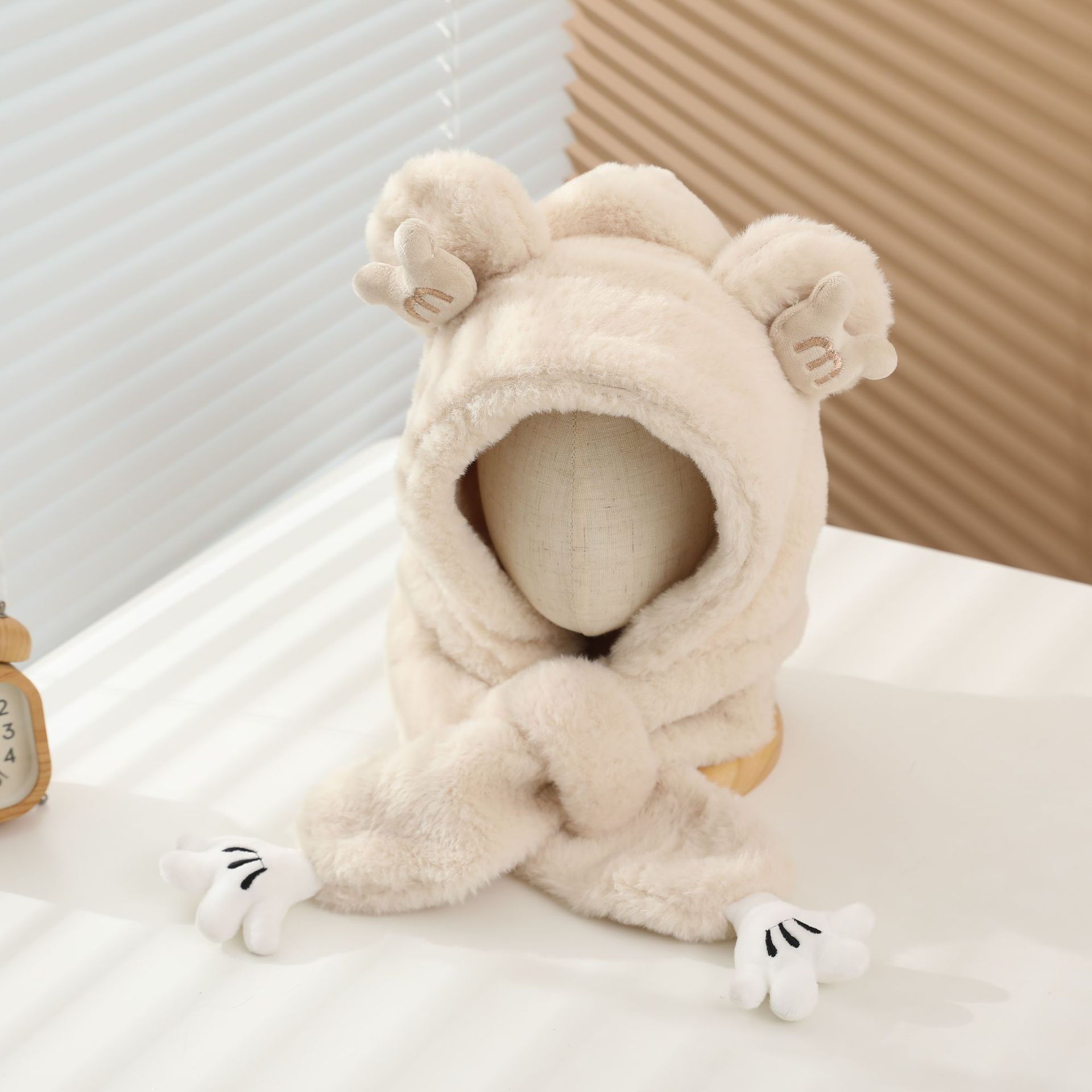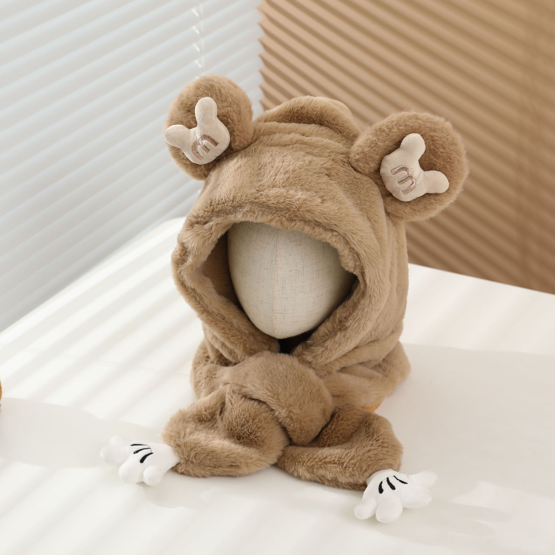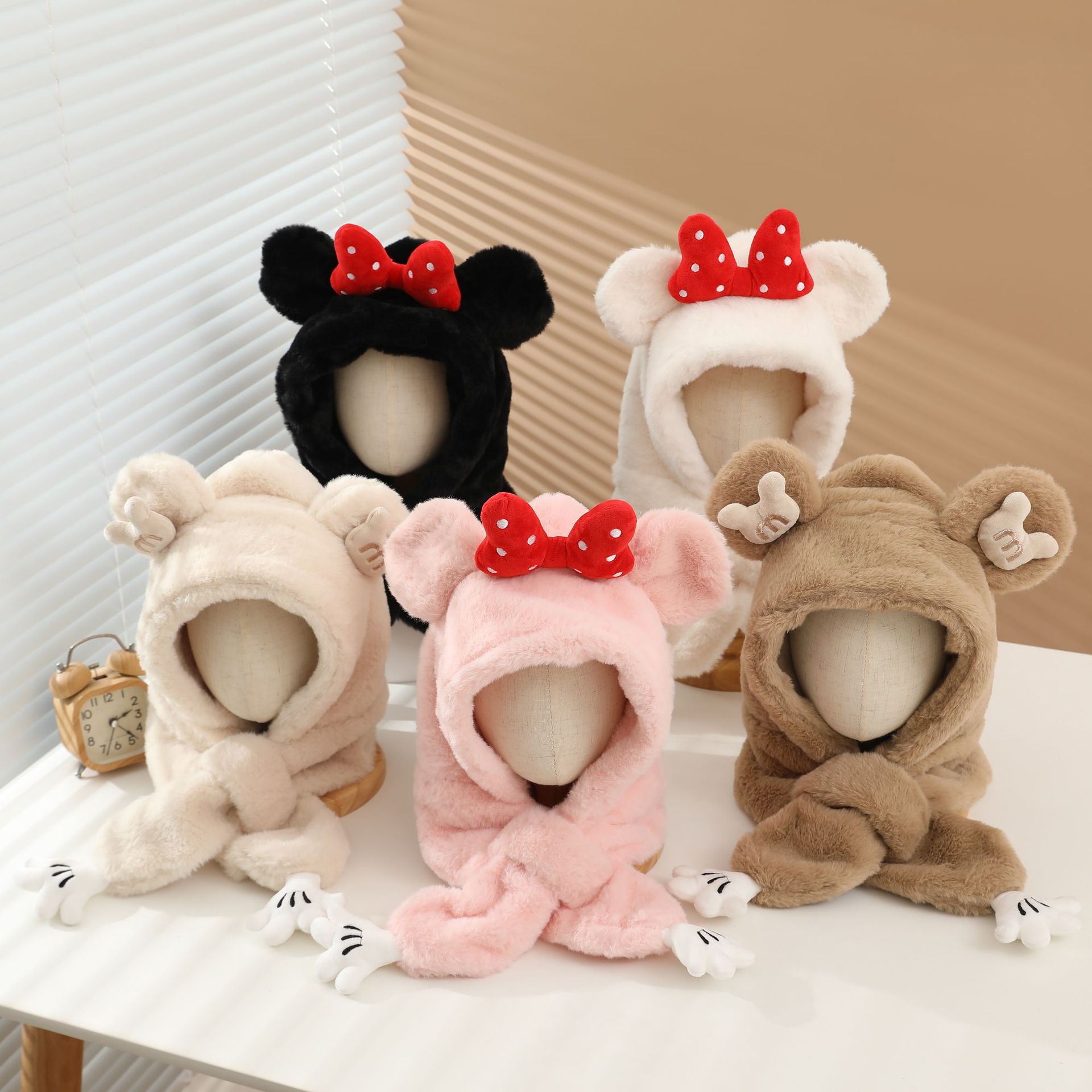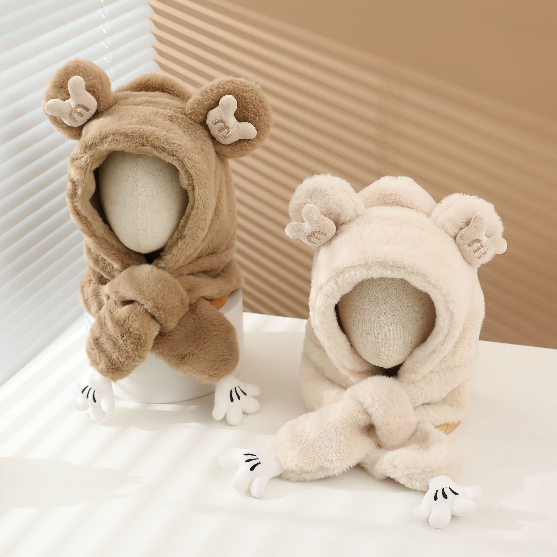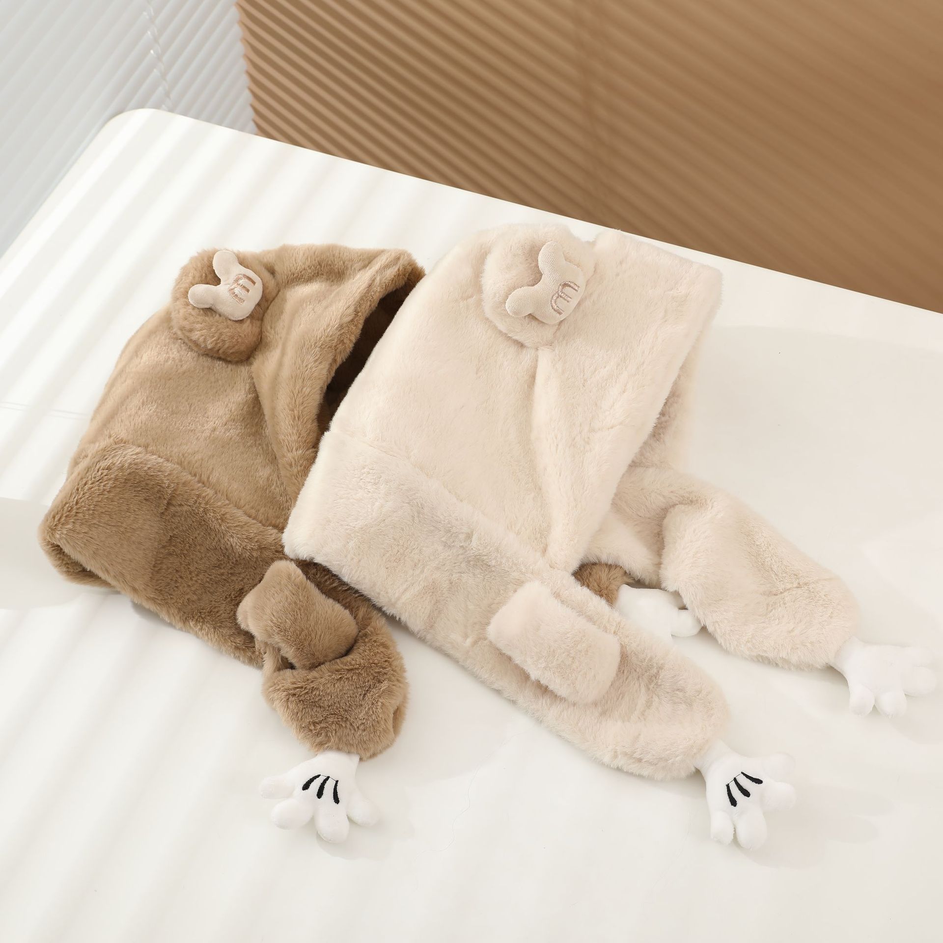 冬の男女児童一体帽子セットアニメ熊人形のぬいぐるみが首を囲んでかわいい保温快適な首を囲んでいる
